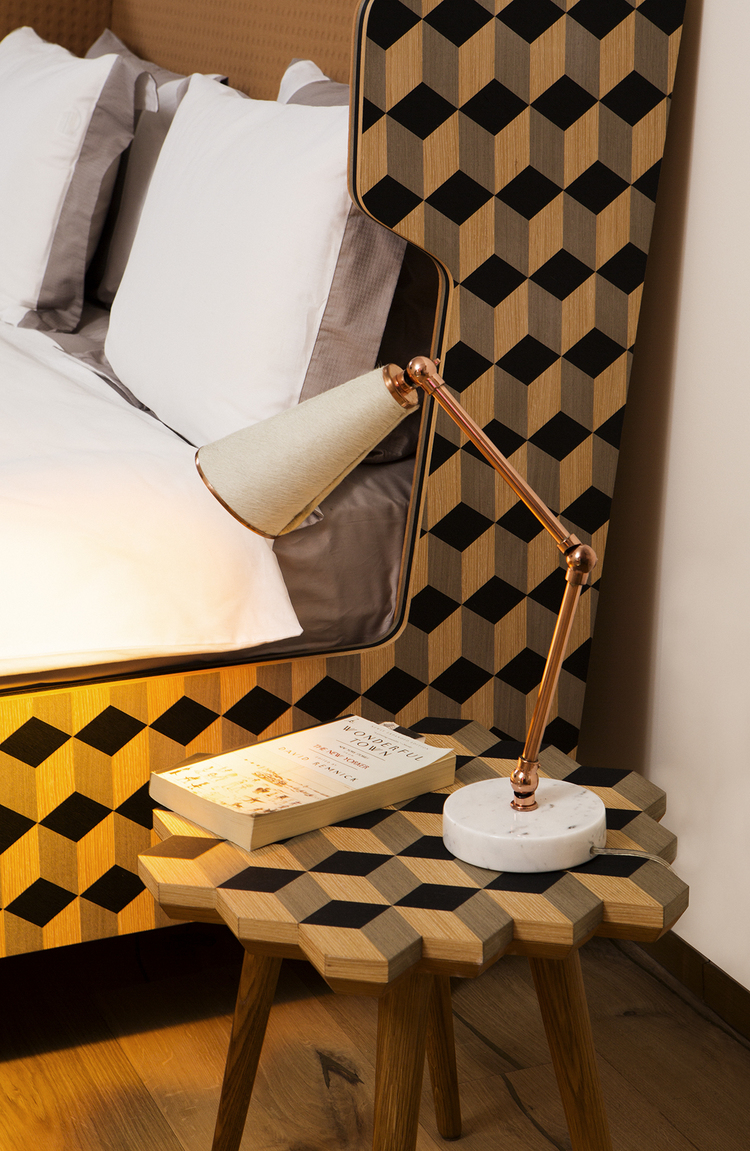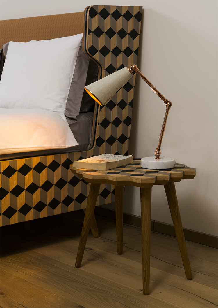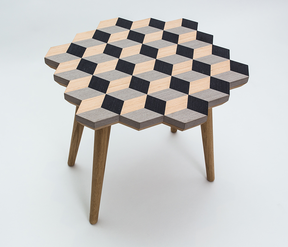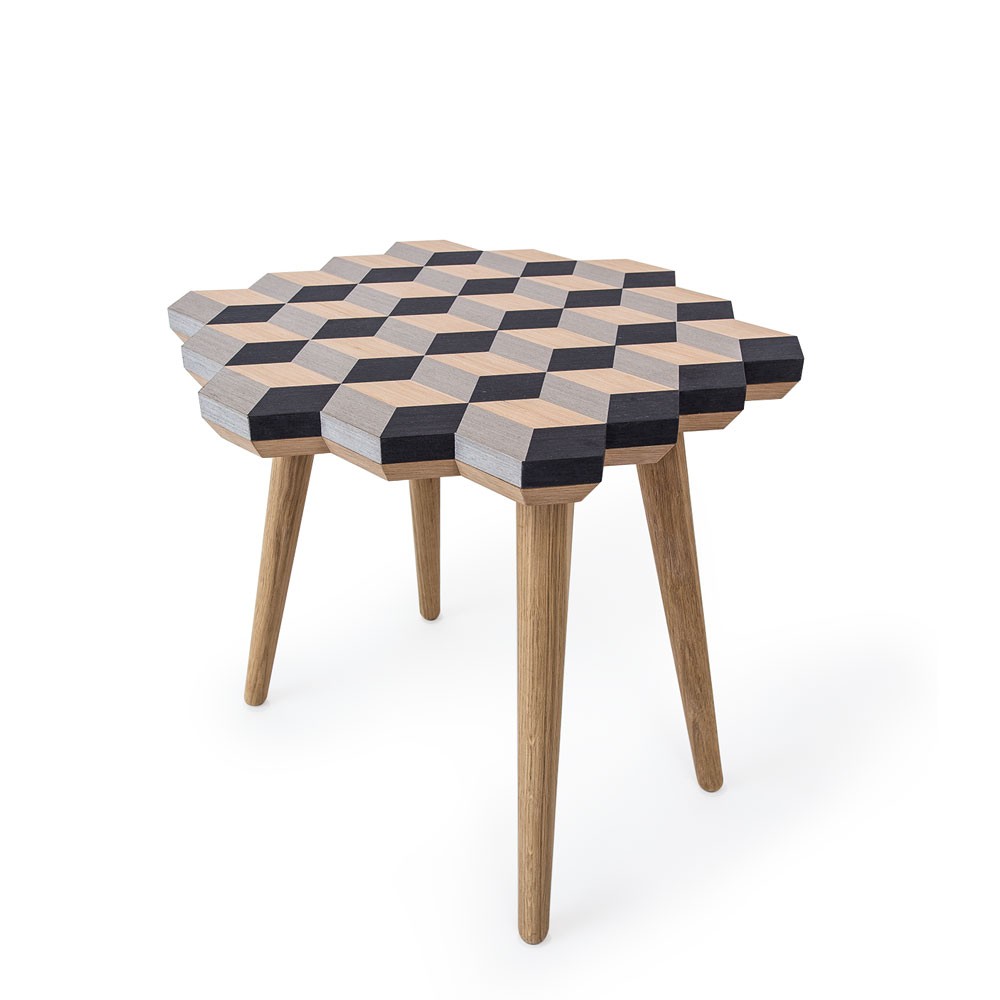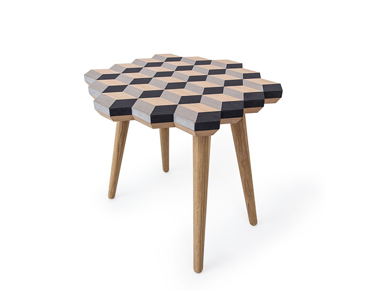 这款独家“Dip Stool”采用三种单色的单板木材制成。 它是通过将几何图形组合在一起而创造出独特的,描绘出迷人的3D幻觉。 这款手工制作的多功能凳子采用柔软的橡木腿设计,带来整体复古感。