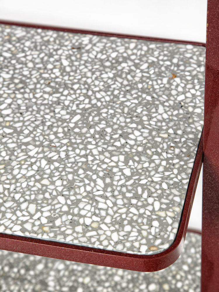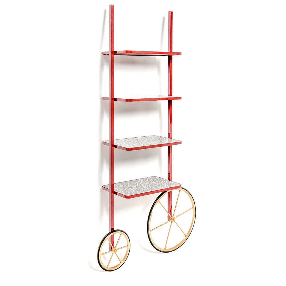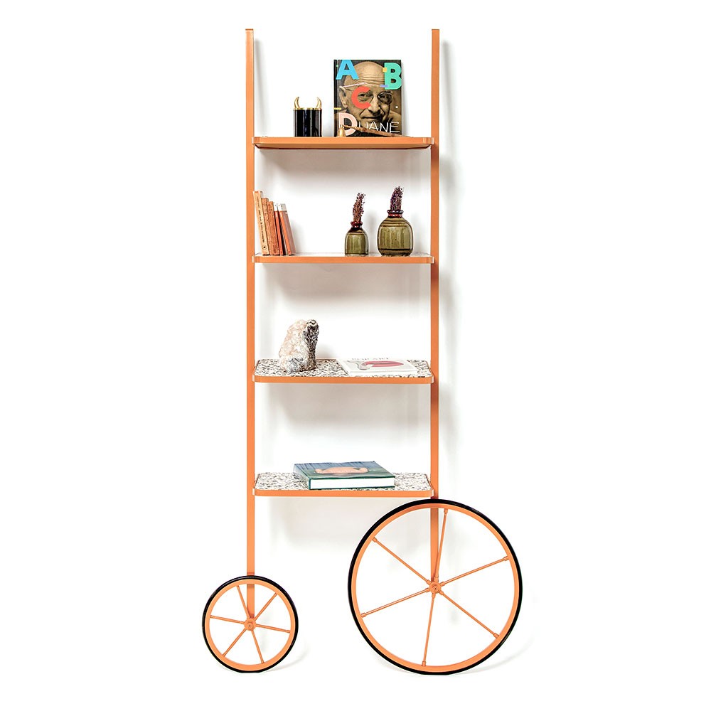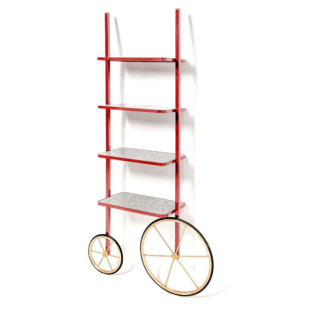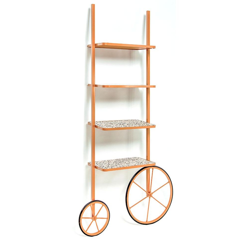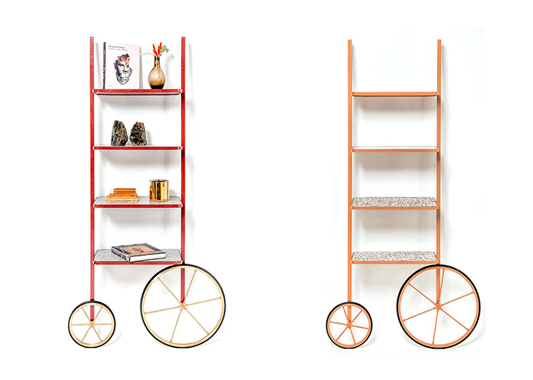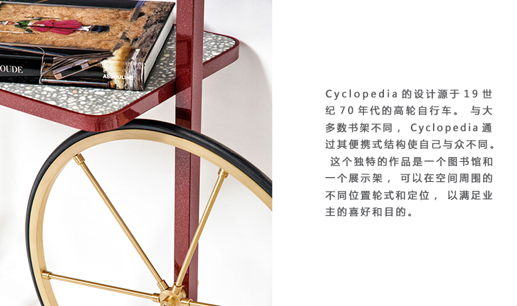 Cyclopedia的设计源于19世纪70年代的高轮自行车。 与大多数书架不同,Cyclopedia通过其便携式结构使自己与众不同。 这个独特的作品是一个图书馆和一个展示架,可以在空间周围的不同位置轮式和定位,以满足业主的喜好和目的。 新版Cyclopedia由波尔多彩色粉末涂层金属和灰白色水磨石组成,这款手工制作的单品必将为其任何表面带来不拘一格的氛围。