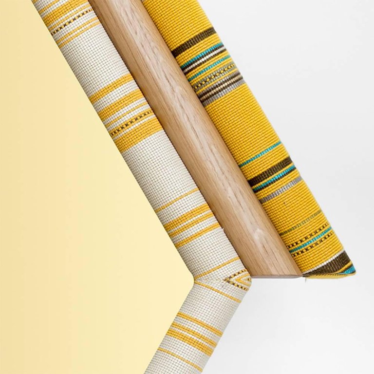 Pontiac Hexagon(庞蒂亚克六边形镜)具有美国核桃和金色镜面的鲜艳色彩。几何图案KvADRAT织物已经对称地切割和手工制作的木材和泡沫。这种复古风格的印花和色彩搭配与黑核桃相配,给人一种朴实的感觉。这些意外的独特镜子也可以定制。