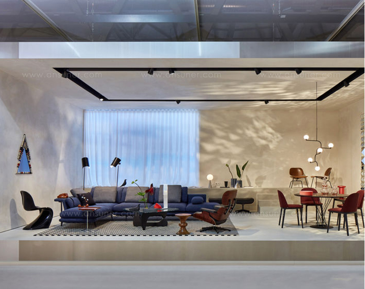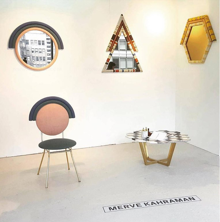 Pontiac(庞蒂亚克)镜受到美国印第安部落的启发。第一个版本有一个更男性化的基调,简单和强烈颜色和深色的木头结合了三角形的形状和灰色的镜子。保罗·史密斯设计的Kvadrat面料已被裁剪对称和手工制作的木材和泡沫。当地的印花和颜色组合与美国胡桃木相匹配