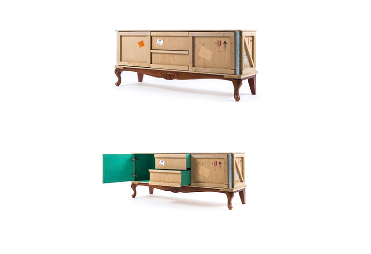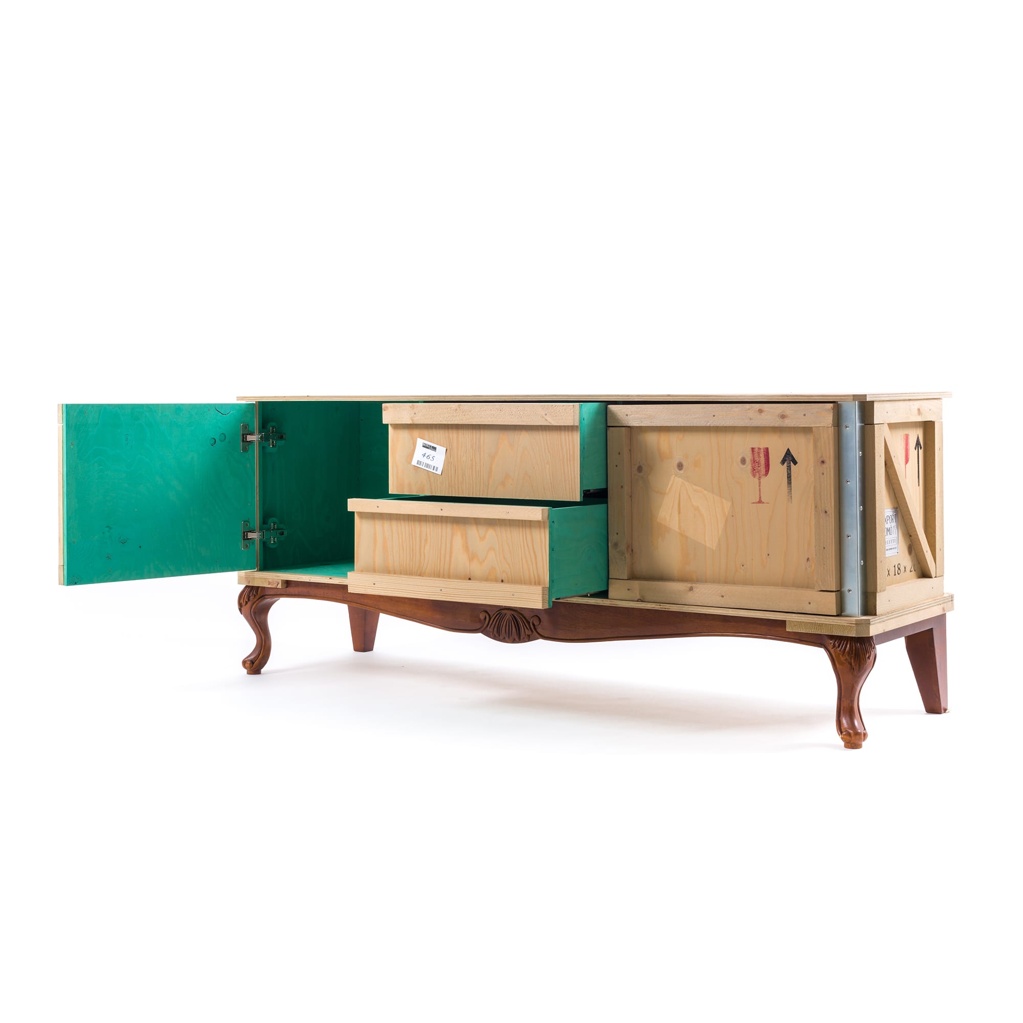 这款现代床头柜由Marcantonio Raimondi Malerba为Seletti设计,它融合了两种不同风格的设计。一个标有各种标签和标志的包装盒配上华丽的路易十四腿。明亮的绿色内部有一个架子和两个存储空间。手工制作的实木,这出口科莫床头柜是令人印象深刻的耐用性,因为它是在其独特的设计。它可以单独使用,在卧室或与来自ExportComo系列的其他家具一起创建一个焦点。意大利制造。