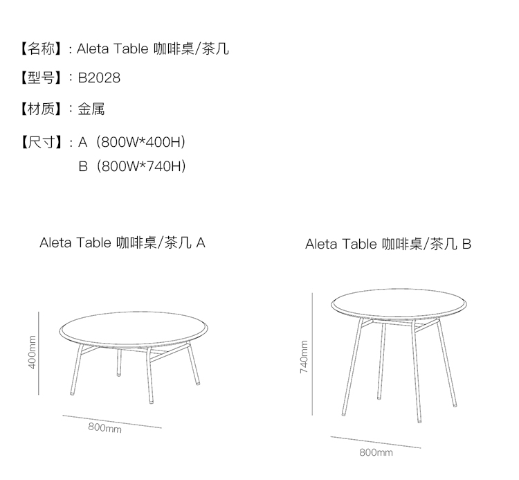 Aleta Table 咖啡桌/茶几 系列尺寸/示意图