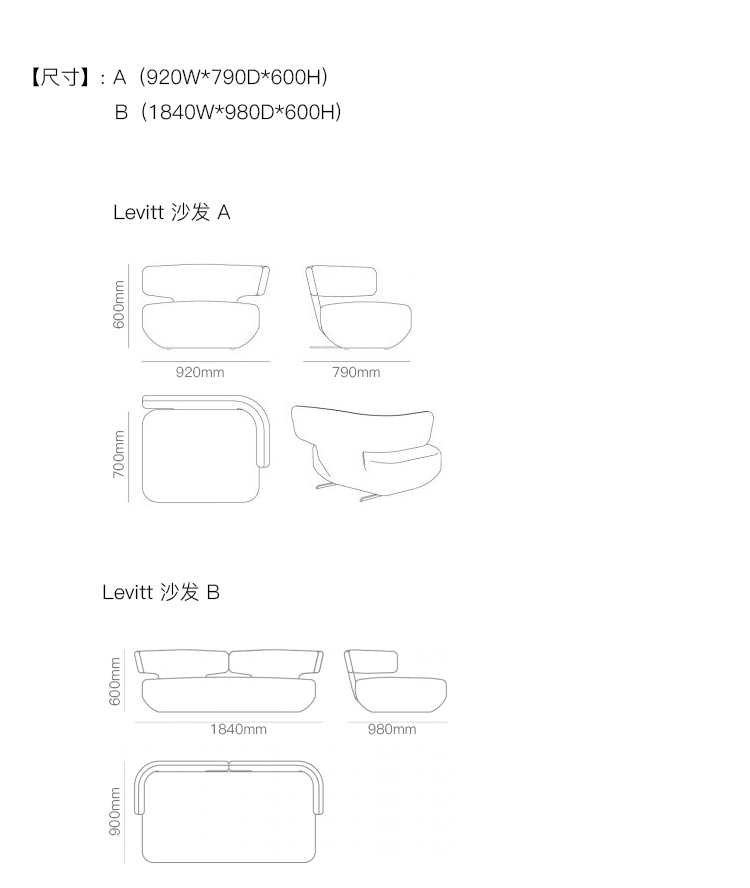 Levitt 沙发 系列尺寸/示意图