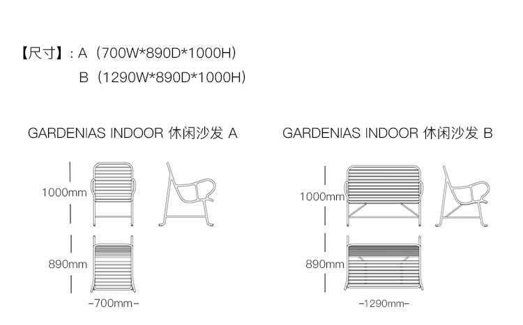 GARDENIAS INDOOR 休闲沙发 系列尺寸/示意图