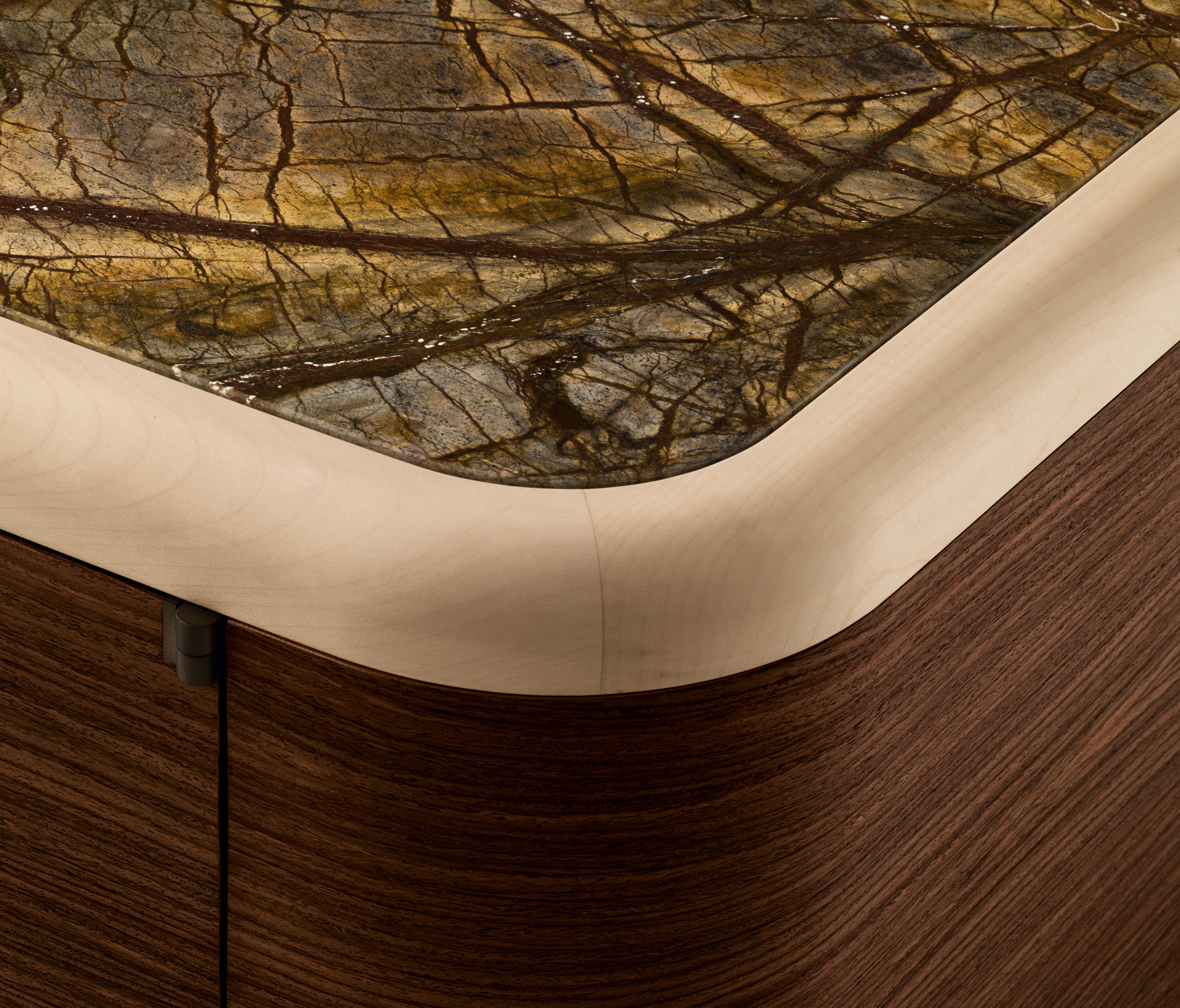 内阁有四个门和弯曲的胶合板的结构与印度紫檀单板的外部部分和枫木单板的内部部分。 在杨树胶合板和坚实的枫木插入可用