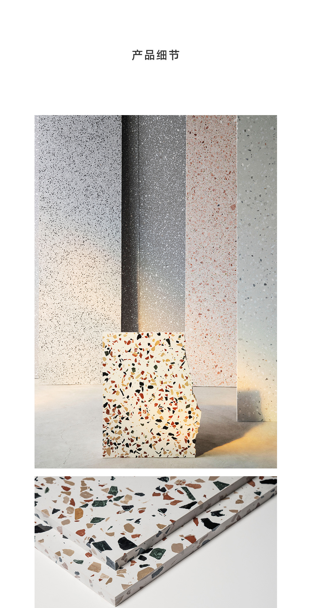 随着天然大理石材不合理开采,社会环境的可持续生态逐渐恶化! 然而人类对天然物质有着不可磨灭的向往和追求,而开采的过程中留下大量的石材的边角料,再利用边角料与混凝土预制搅拌,经过表面打磨抛光做成水磨石装饰板材,这可能是天然石材的挽歌,也是作为地球公民对社会自然生态可持续发展作出的一些探索。