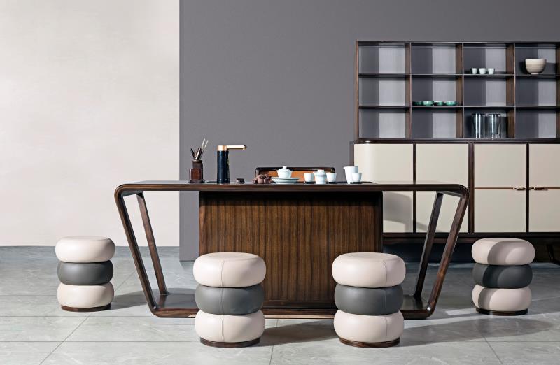 1.整体造型采用上方通透博物架与下方封闭柜体的组合设计形式,兼具展示与储藏功能。 2.柜体腿部内收,上收下分,具有很好的视觉稳定感,稳重大方。 3.简洁铜制拉手,在保证实用性的同时,赋予独特中式韵味,彰显价值。