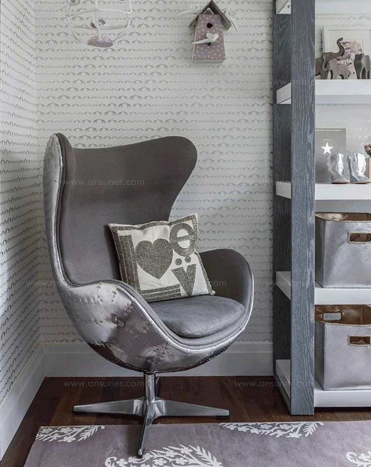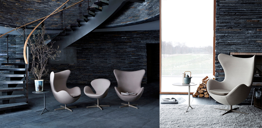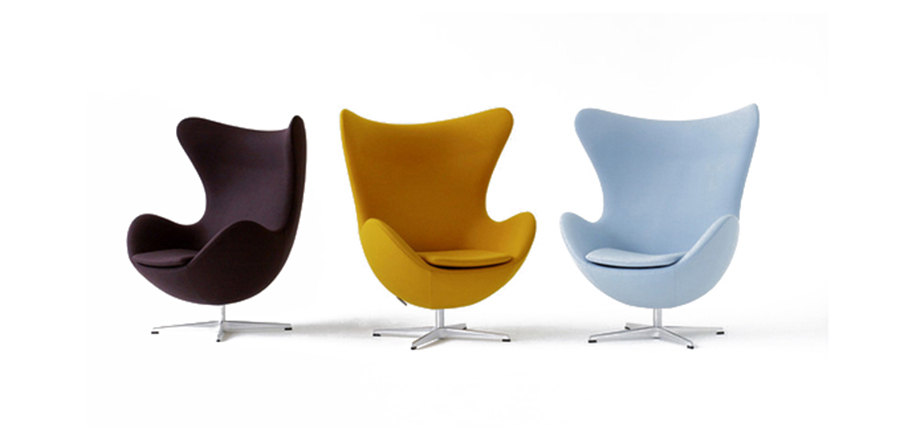 他将自身对建筑的独特见解延伸家饰品,并为一手绘制的建筑结构装点添色,因而摧生出如长着三只细腿的蚂蚁椅(Ant Chair)、蛋椅(Egg Chair)、天鹅椅(Swan Chair)、The Oxford chair等旷世之作,以及雅宅、工厂、展示间、织品、时钟、壁灯与门把等无计可数的多元创作