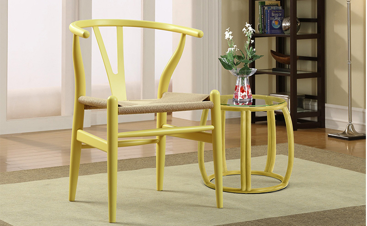 Y椅子是Hans J.Wegner最著名的作品。 它具有重量轻、有吸引力、舒适、中式风格等特点。 该款设计灵感来源于中国传统家具,四平八稳,古色古香,大气自然。上圆下方,浑然天成,深受中国顾客喜欢。Y椅关键在于是工艺与简约的设计,有着清晰的线条。 尽管椅子简约的外观要超过100个步骤进行。除其他事项外,手工编织座垫超过120米的线。 材料有丹麦硬木(橡木,榉木,水曲柳)以及北美硬木(胡桃木,樱桃木)等。外表可漆成各种各样的颜色。 垫子的座位可以添加额外的舒适。