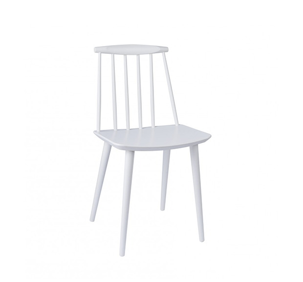 J77是由Poul M.Volther在50代所设计的三脚单椅,使用山毛榉原木制造,另有四种不同色彩黑、灰、白、珊瑚红可供选择。隶属于FDB系列的J77单椅,是HAY在 2011年推出丹麦精典家具复刻版系列之一,当年原本是为丹麦消费者合作社(FDB)所设计的产品。兼具实用和自由设计的概念,就是40年代FDB的家具产品核心概念,藉由规模性的生产,降低成本,FDB系列让设计家具在当时的丹麦不再那么高不可攀的遥远,FDB 系列不但价格亲民,同时兼顾制造的高质量,风味独具的设计更是历久不衰。经典的温莎式造型 (Windsor style),可以说是FDB系列单椅 - J77/J104/J107/J110共同的设计DNA,全木制的FDB系列单椅,椅背由多根直棂构成,通透利落的造型,带出有别于其他单椅的强烈视觉效果,通透的靠背设计,也让整体造型变得轻盈,但底部三只旋木椅脚由上至下向外倾斜挺立,具有轻巧而稳重的视觉效果。J77是FDB系列当中,唯一的一张三角单椅,并且有着造型别树一帜的三角椅面,体积较小却又舒适无比的J77不但适合商业空间或较小的居家空间使用,也适合与其他FDB系列单椅相互混搭,营造高低的层次效果。数十年过后,HAY决定重新生产的FDB系列,除了立基于HAY的品牌精神-期许让丹麦家具设计回归50、60年代的创新思考模式,并赋予崭新的当代内涵。也将FDB系列的经典延续,并且推广至全世界,让世人都能回顾,并且享受型能兼具的FDB。