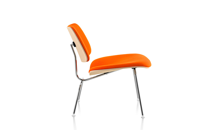 A refreshing variant of the LCM (1946), the Upholstered LCM sports Kvadrat Divina fabric on its front side. This iconic chair began as an experiment in the Eameses'apartment,where they were molding plywood in what they called the“Kazam! Machine.”The machine pressed thin sheets of wood veneer against a heated membrane that was inflated by a bicycle pump. Humble beginnings for what would become one of the world's most widely recognized and highly coveted chairs.Low-slung,with an expertly crafted molded seat and back(no bike pumps are used today),this chair cradles you in a comfortable position.Its form relates directly to the human body and holds no secrets as to how it succeeds technically.The slender rod base provides superior strength,while rubber shock mounts buffer against jarring movement.