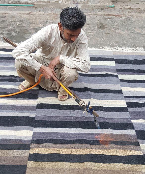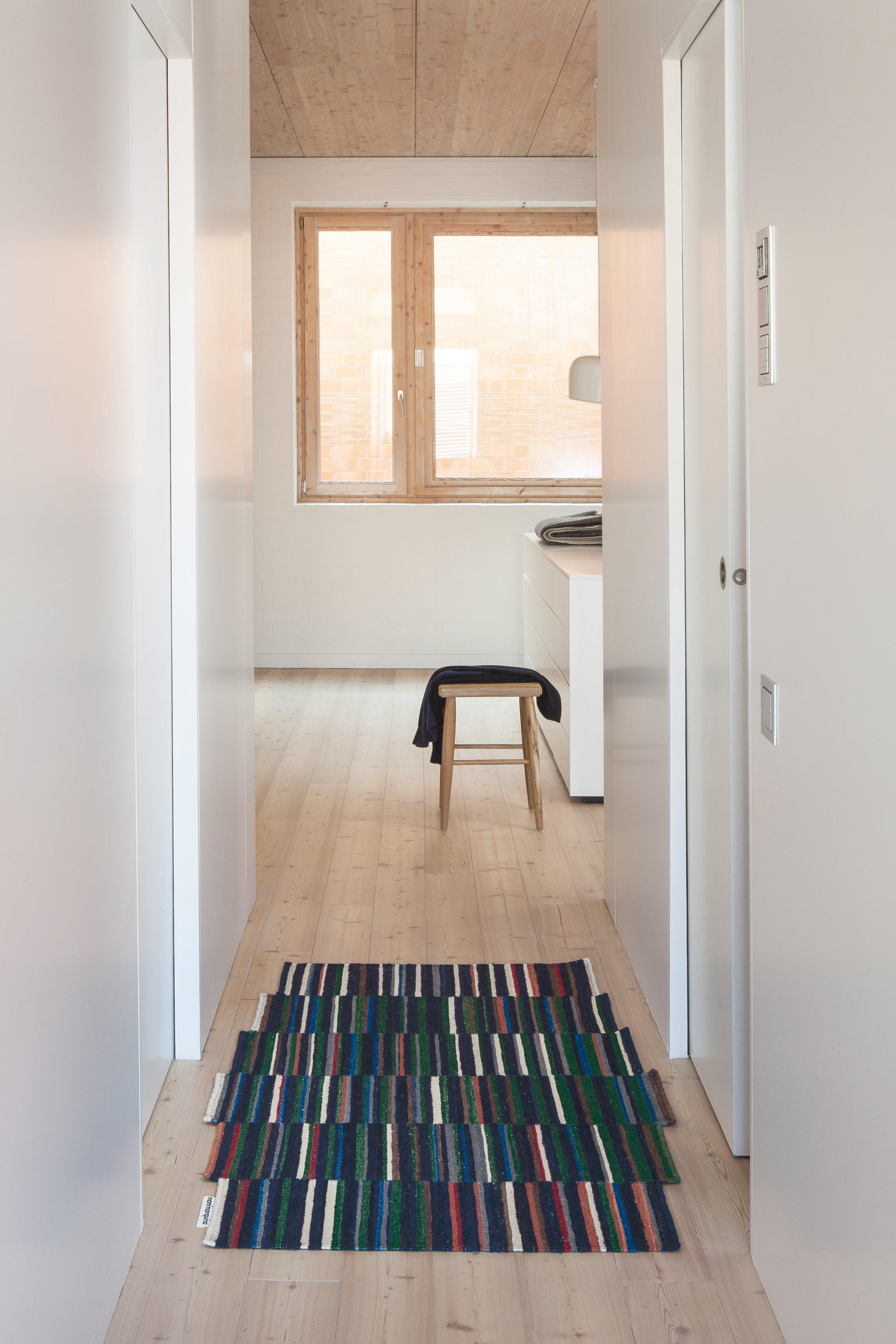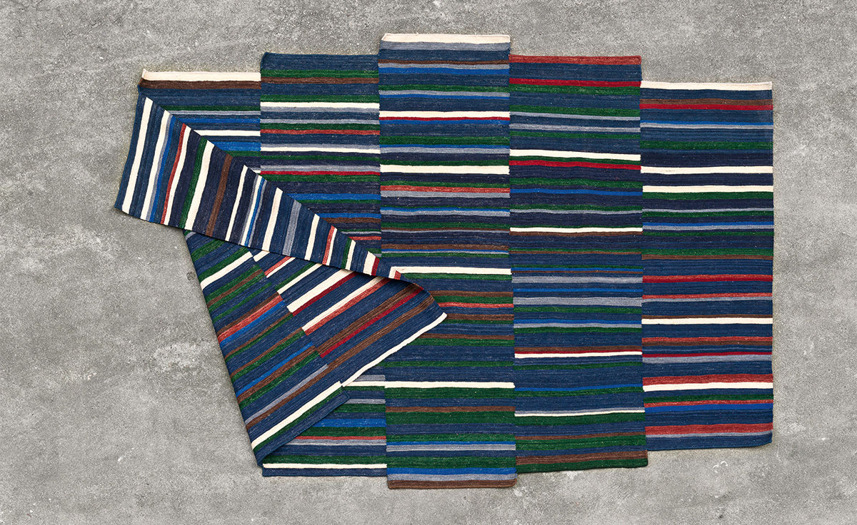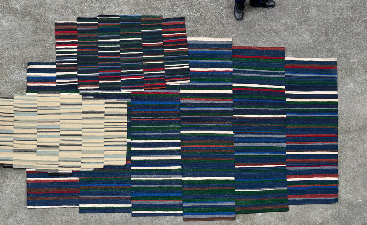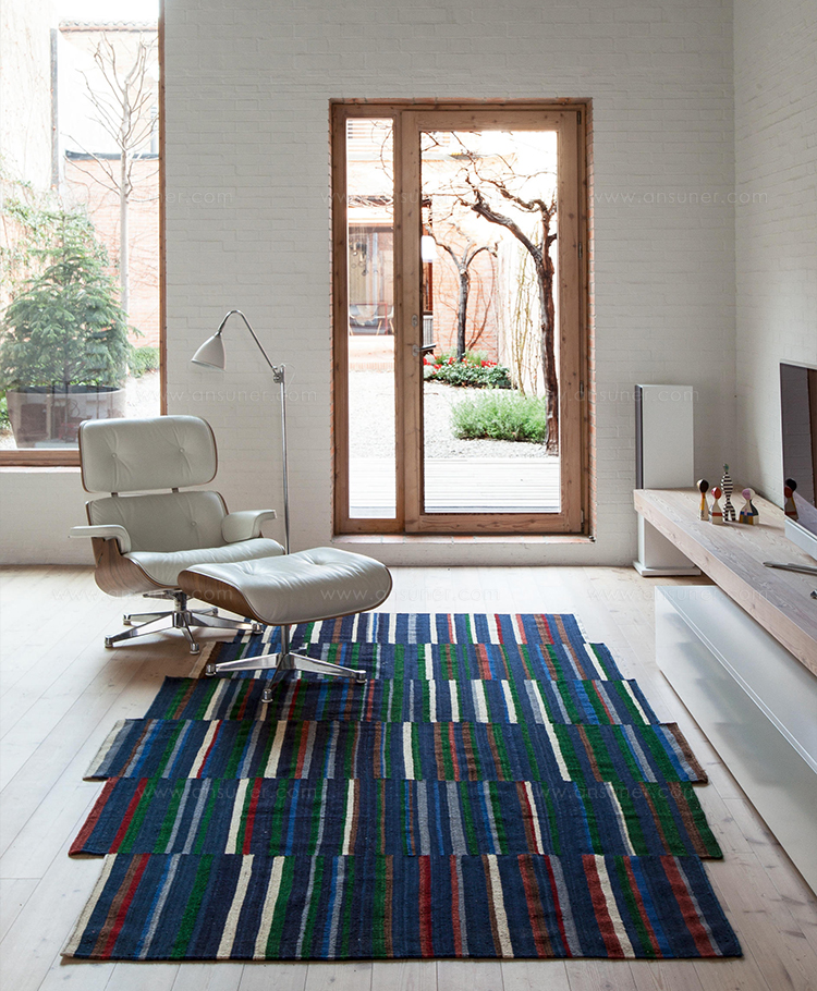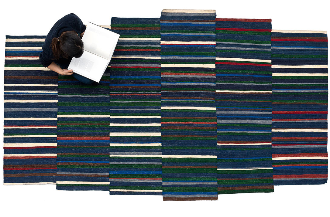地毯通常被设计成一个图案分布的表面。然而,在格的情况下,模式被定义为一种生成地毯本身形式的建设性系统。彩色条纹的系统,在这种模式,形式和颜色以一种亲密的方式联系在一起,创造了一个不同的范围。——布洛埃克兄弟解释道。