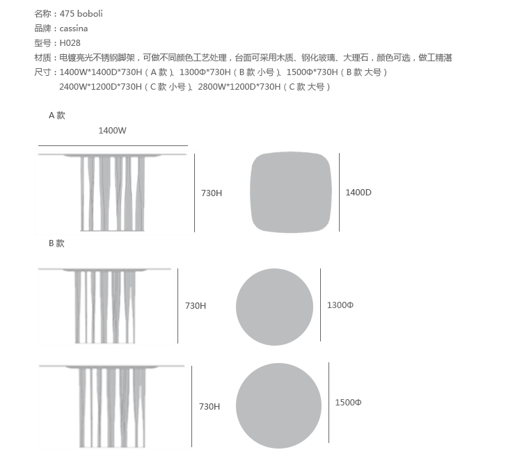 B款:1300Φ*730H、1500Φ*730H