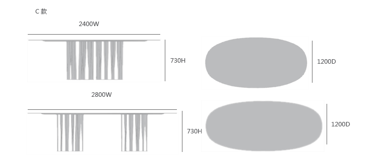 C款:2400W*1200D*730H、2800W*1200D*730H