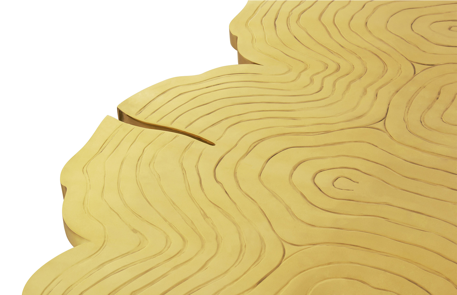 A fresh contemporary dining table and a shimmering statement from Boca do Lobo. Fortuna represents the materialization of luck and fortune, a symbol of the control of life and the definition of fate. An elegant composition of scaled brass tubes supporting the outlines of log rings in brass, related do the time life of a tree. Available in iron and copper
