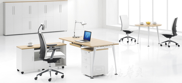 ※  别致的桌面线条配以纯白圆形钢铁柱脚或板脚,彰显个人品味。个人配套包括边桌、流动抽屉柜、前档板、高柜、矮柜等使台子更瑧完美。