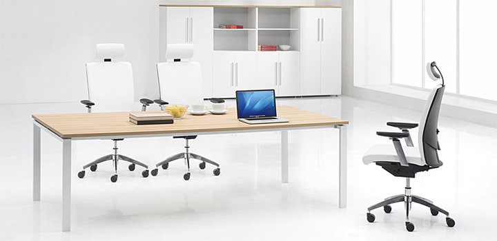 ※  上图为“方通脚”款式会议桌,脚架的颜色有银灰色和白色选择,台面板有多重选择,满足领导临时接洽和会议的需要!