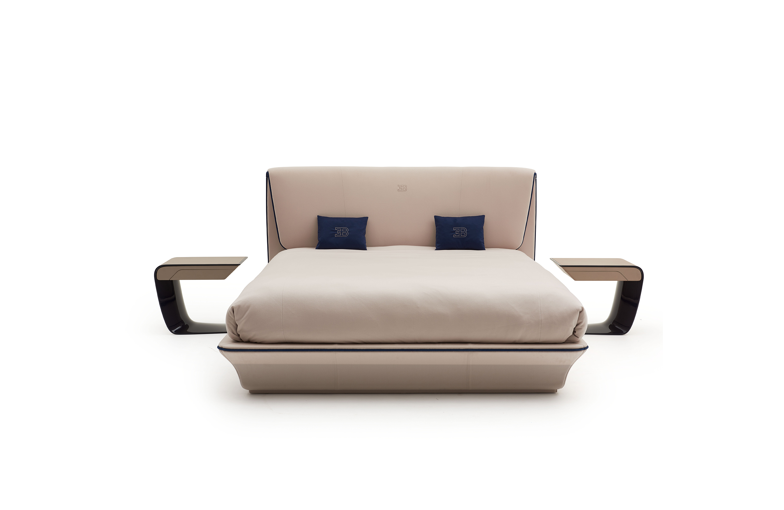 这张同名的现代床以爱特尔·布加迪的女儿丽迪雅的名字命名,将舒适和奢华提升到了一个新的高度。宽而舒适的床头板配有布料或皮革,以提高舒适度。描绘品牌的美学,丽迪雅的床榻和侧面的桌子都是在罗亚尔蓝色的管道里完成的,同时也伴随着EB字母的刺绣。