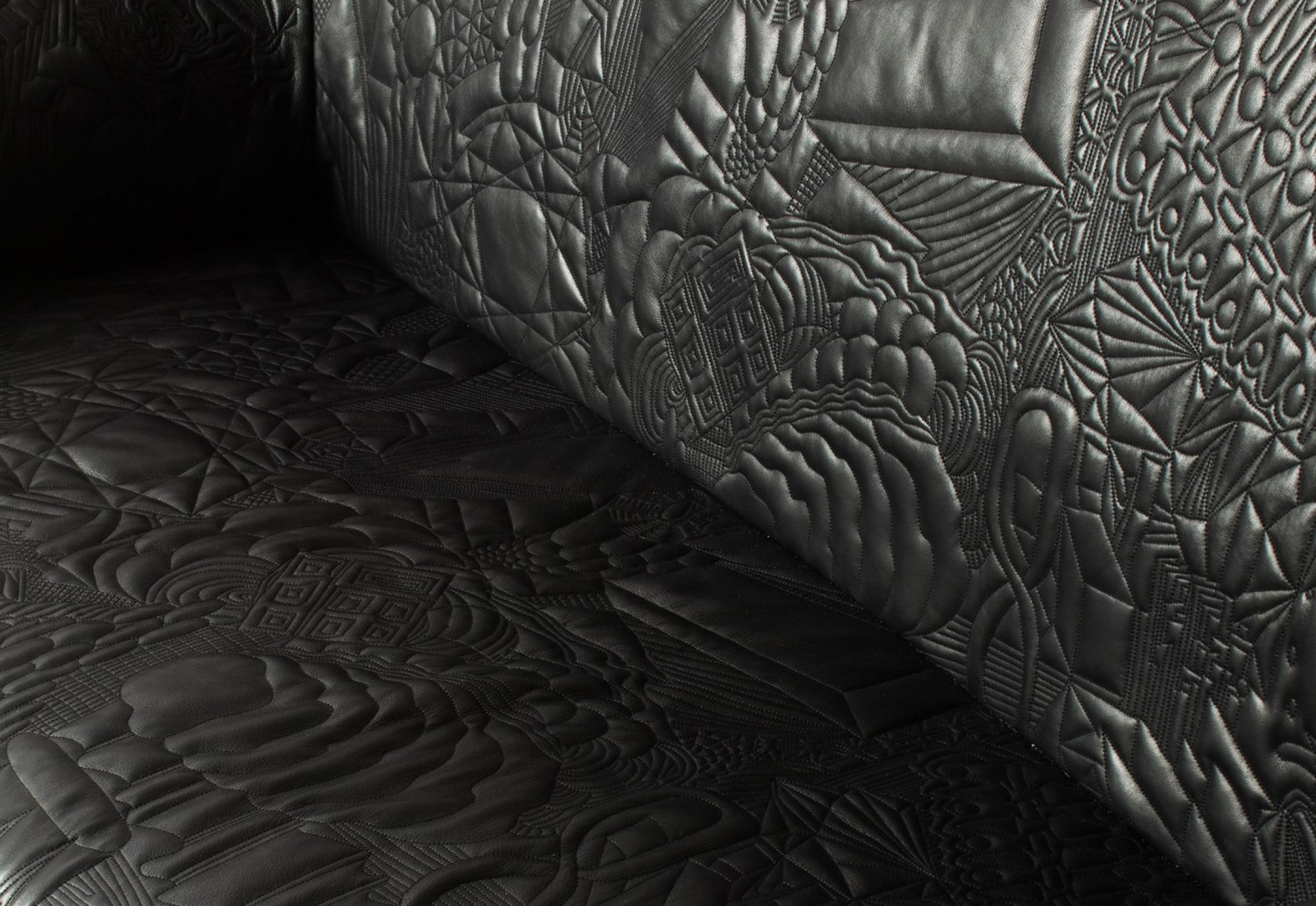 从电话通话过程中无意识地进行涂鸦的手,思想的线条浮现出来。在电话中无意识地涂鸦的那只手,思想的线条浮现出来。单纯的思考经过累加的过程,无意识的笔触,涂鸦;一开始有一条直线,最后有一个完整的,复杂的部分。因此,刺绣。沙发的设计是由折叠的毯子做成的。座椅是精致的,深沉的思想,扶手是柔软的,沙发是欢迎的。家具上的绗缝遵循着涂鸦的线条。这是一个欢迎的想法,一个白日梦。
