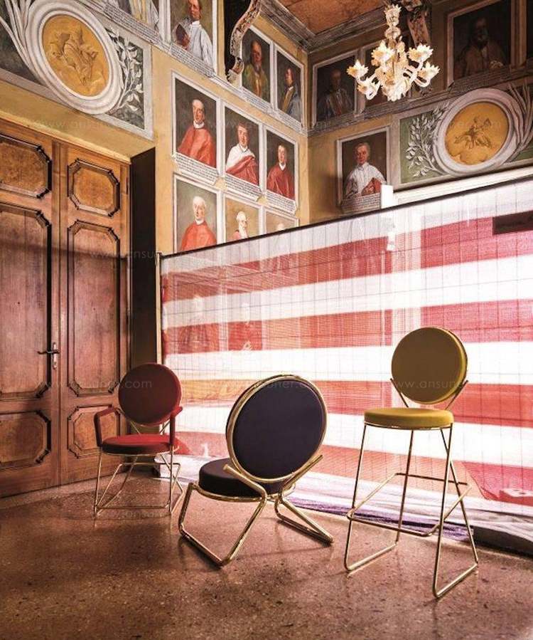 两个圆圈,两个基本模块接枝到本领域的结构几何结构中,去除了灵感,公开地传达了最大限度简化的趋势。这是高品质工业生产的前奏,这是一种优雅的经济,由镀铬钢框架提供的可能性表达,将设计结构设计成一个完整的座位家庭。这样,一把椅子和一把凳子就诞生了,没有扶手,加上一个小小的双座沙发,这是一种精致的正式进化,由良好的品味和阶级所决定。这是一种回归秩序,向一种同时奢华和合成的语言过渡。