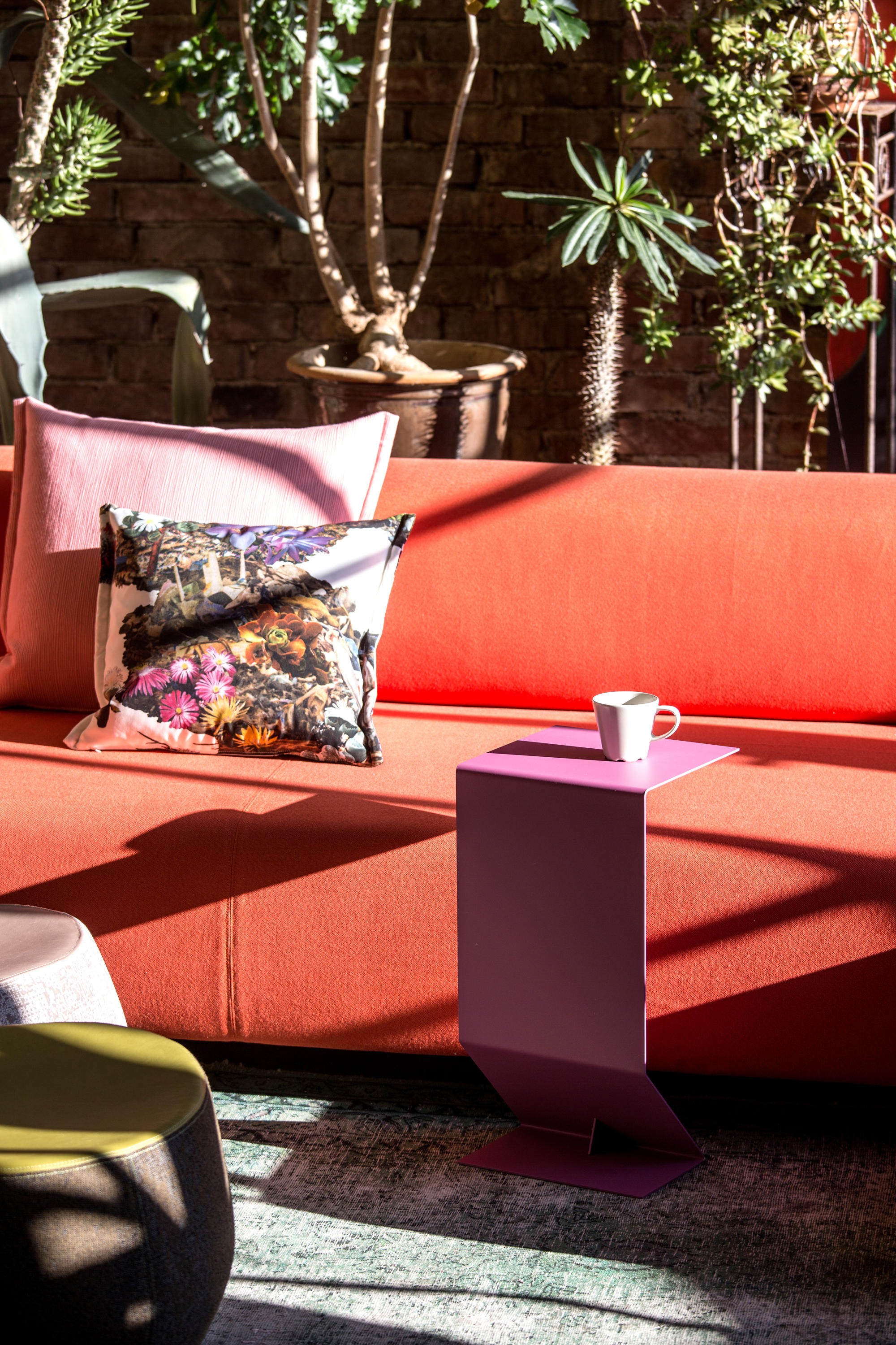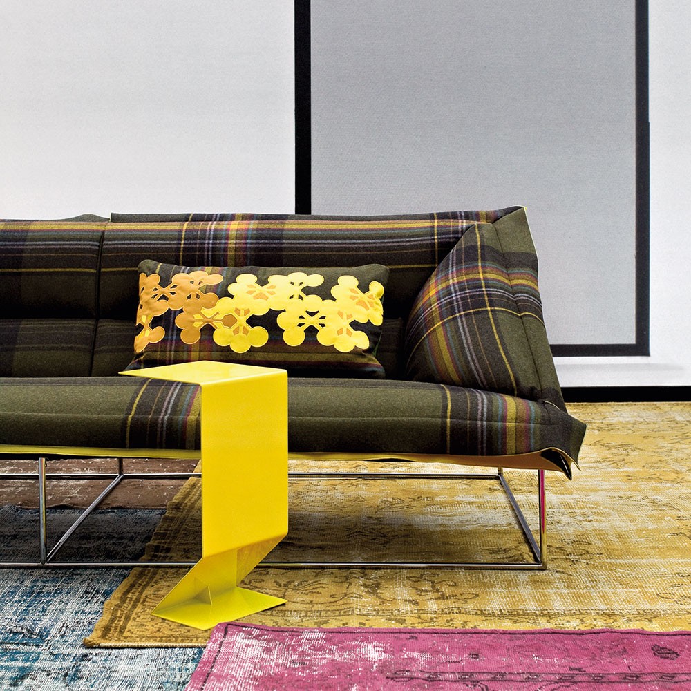 悬臂式桌子被设计为高度灵活和通用的拉升表面,以配合低矮的沙发座位。