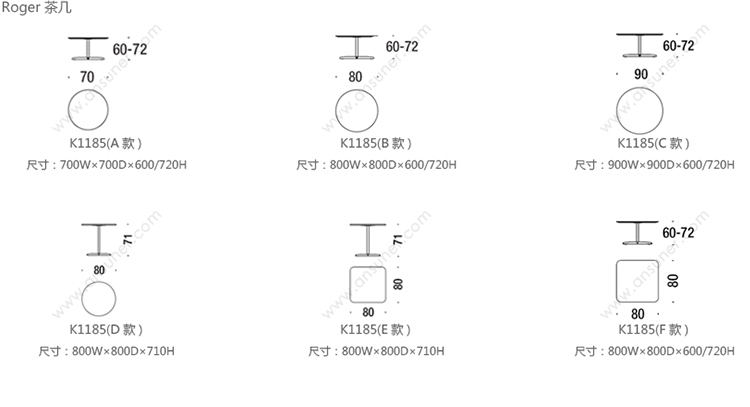 Roger 茶几 系列尺寸/示意图