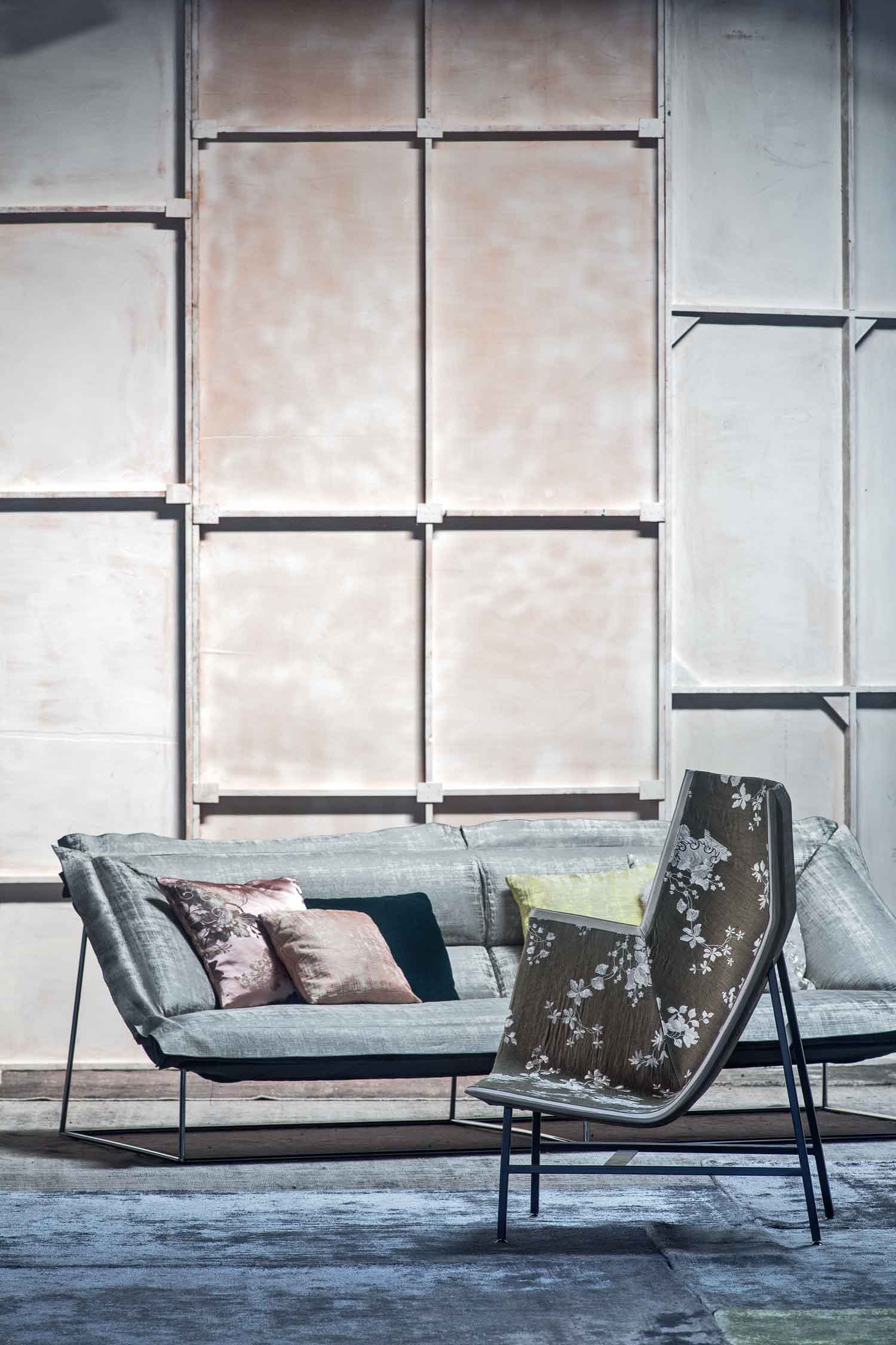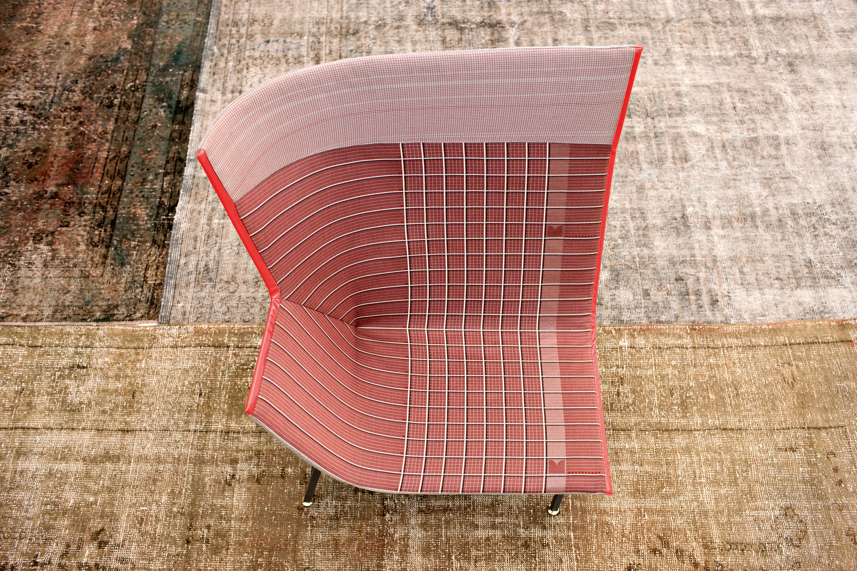 纸飞机起源于一种基于图形纸的织物设计:它的形状来自于纸张的折叠和造型,作为对形式和结构的探索,创造出角度、线条和多边形。它看似简单,却需要高超的裁剪技巧:面料的线条必须与椅子的几何结构完美结合,这意味着没有犯错的余地。