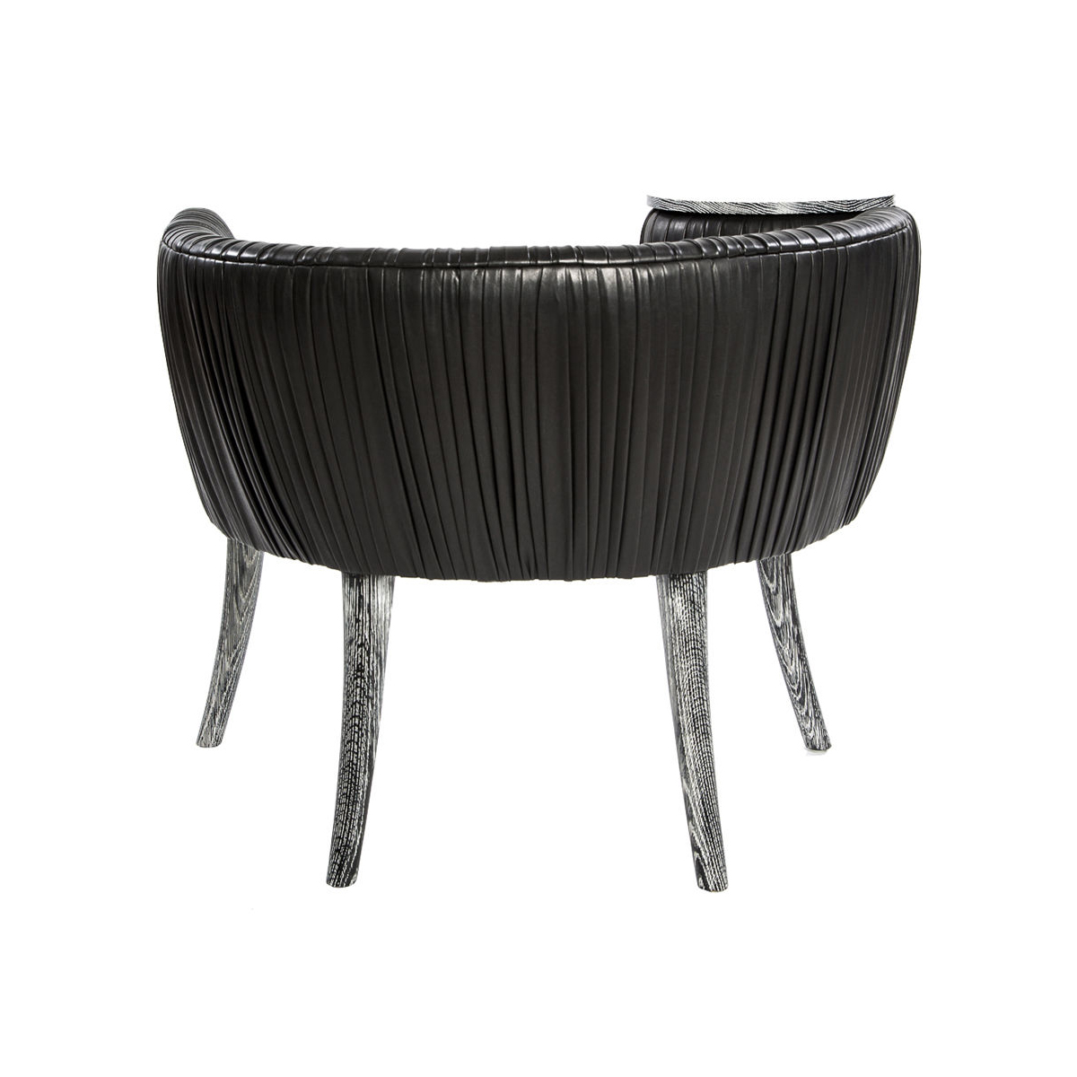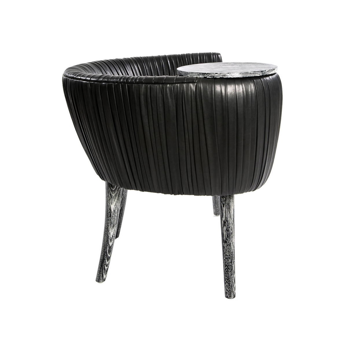 这款椅子的精致线条采用标志性皱折皮革细节设计。 这款精美细腻的椅子有一个小的附着的桌面和锥形腿,全部由手工橡木制成。
