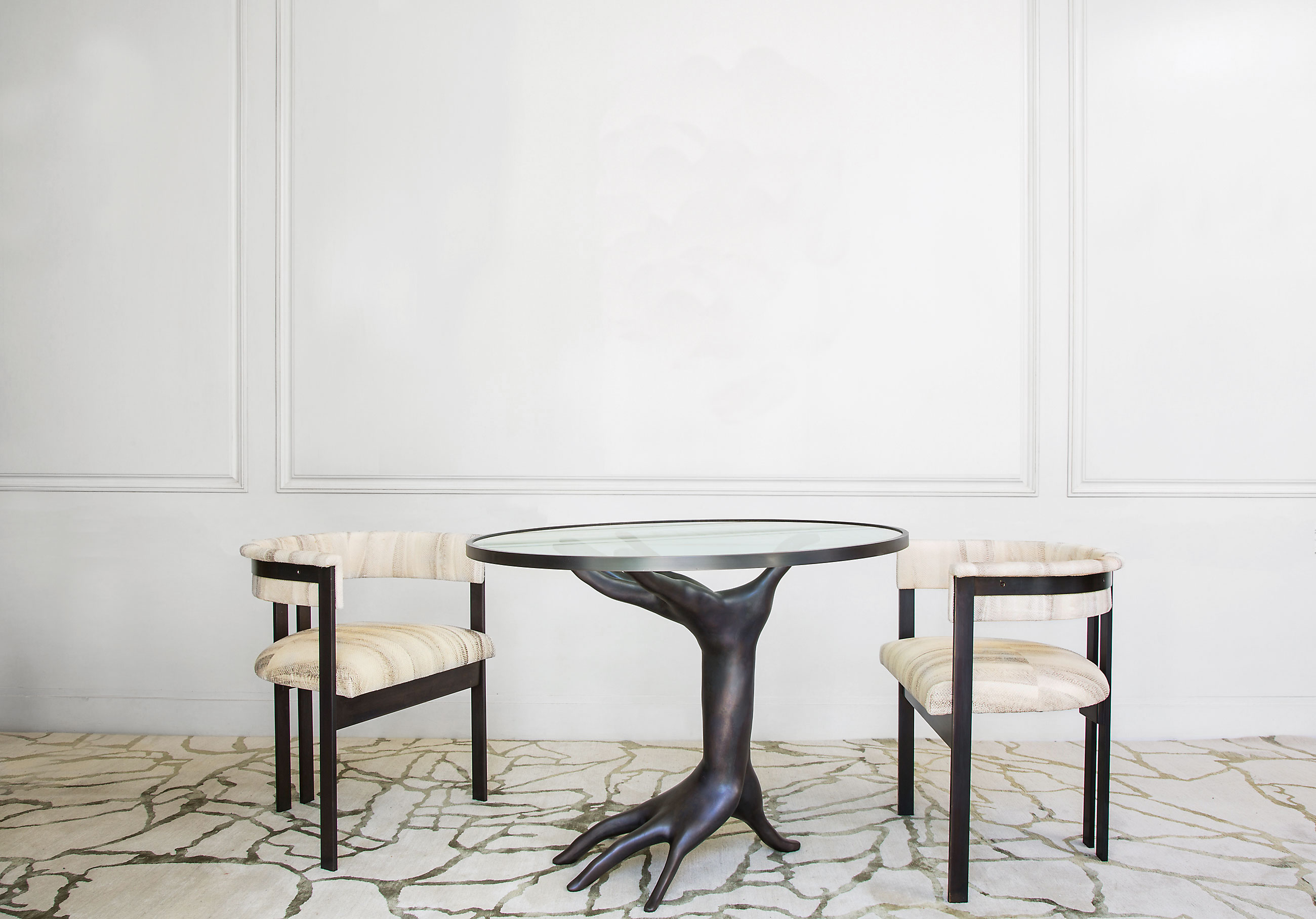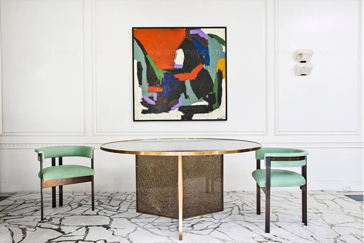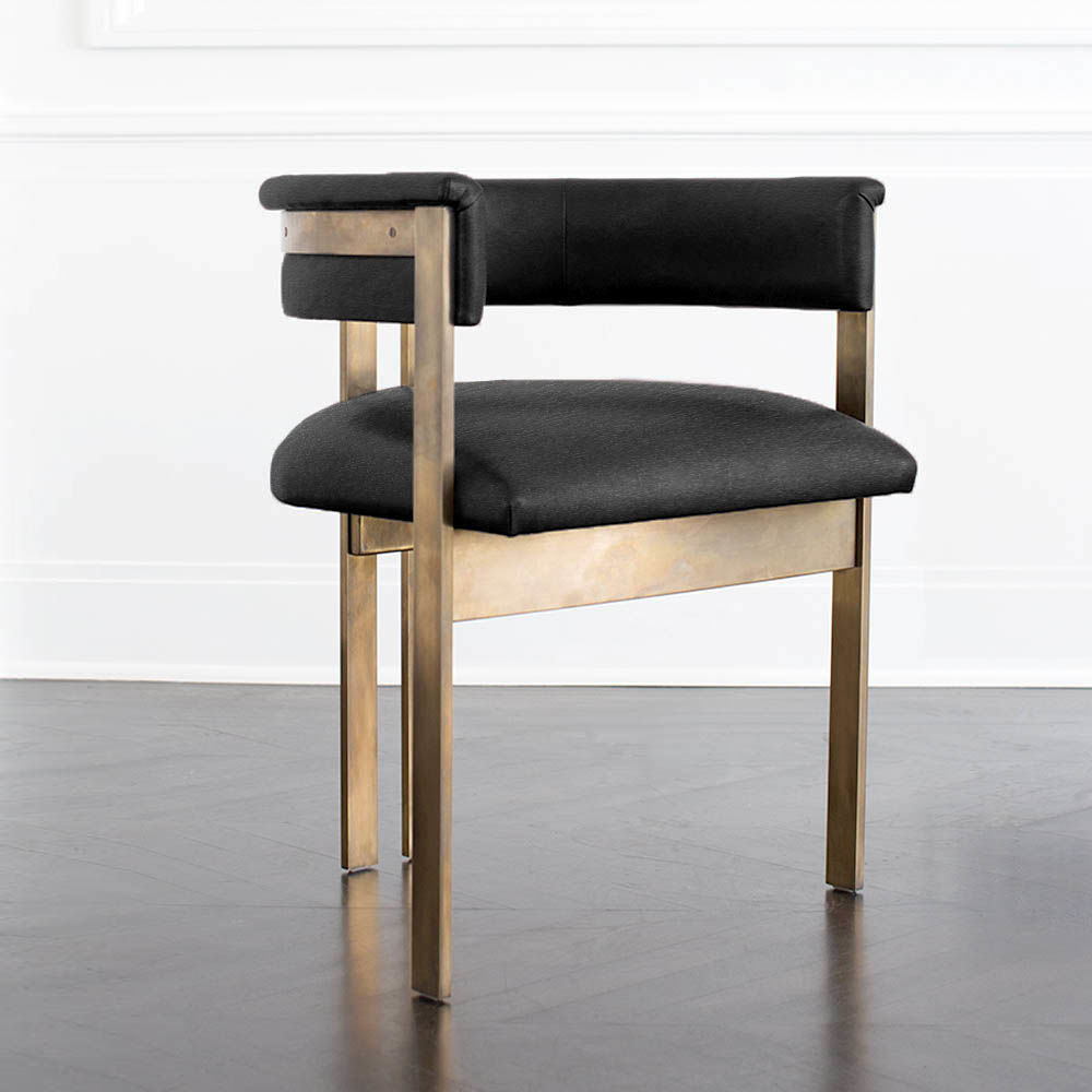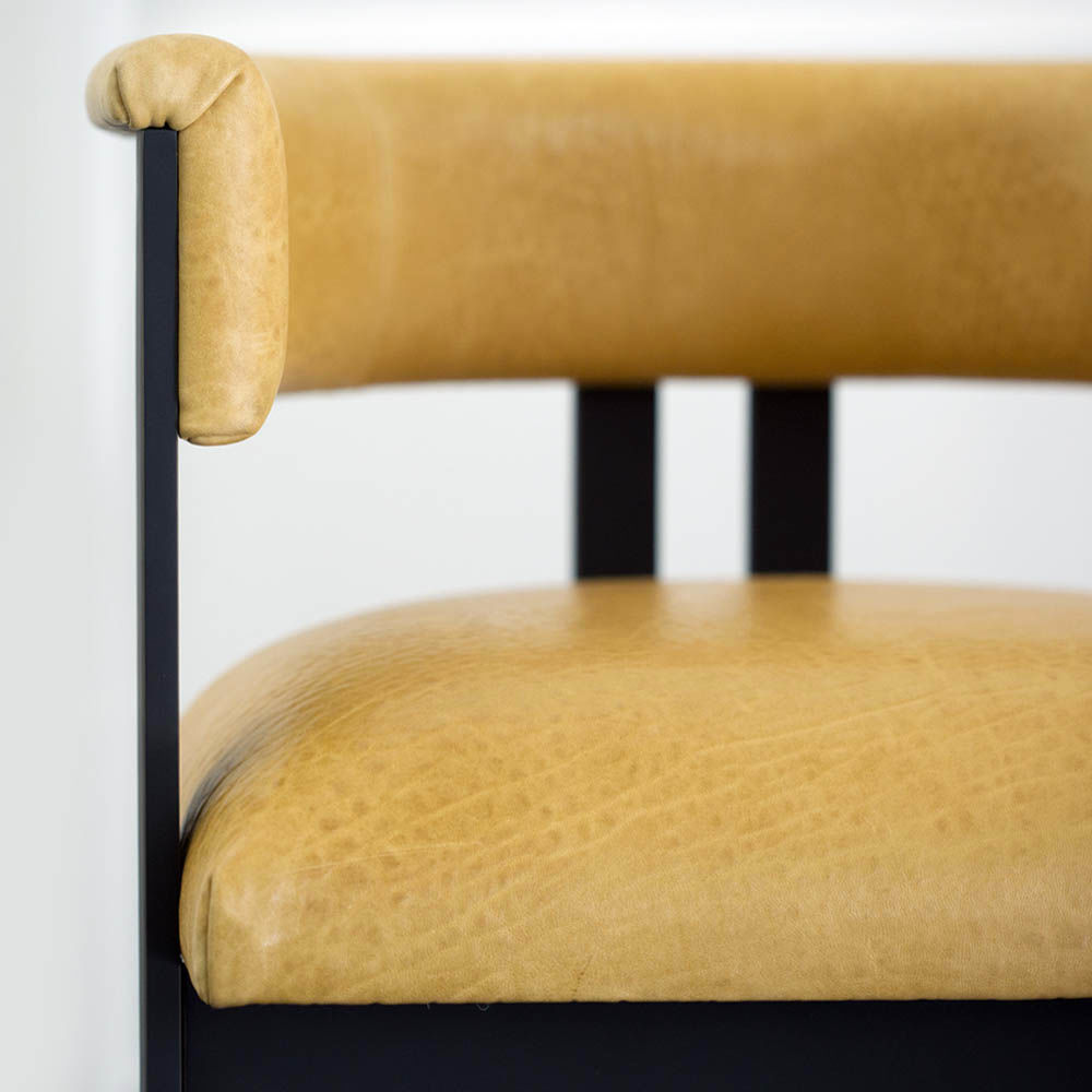 标志性的Elliot椅结合了简洁的线条和经典的乡土风格。这款餐椅或休闲椅的特点是配有一对黄铜吧台腿,要么是抛光黄铜,要么是油光锃亮的黄铜。 座椅有各种精选面料和皮革可供选择。