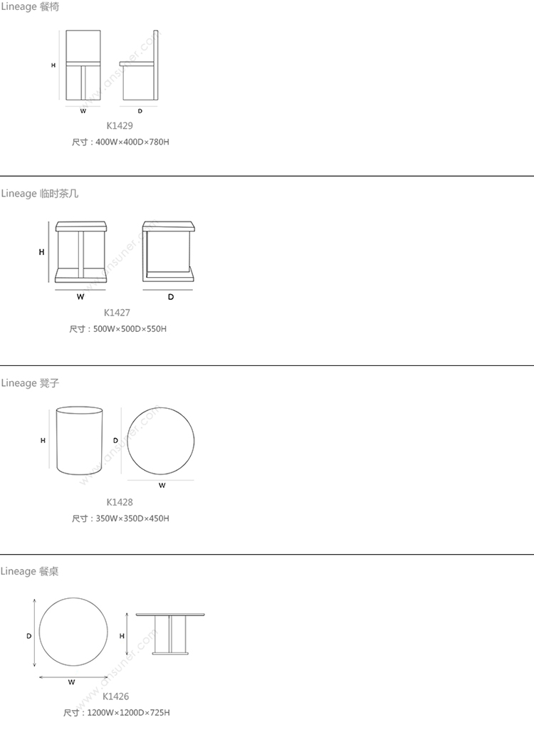 Lineage 餐椅 系列尺寸/示意图