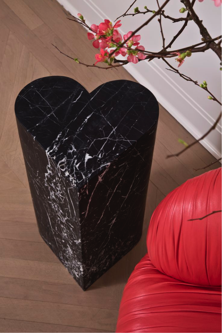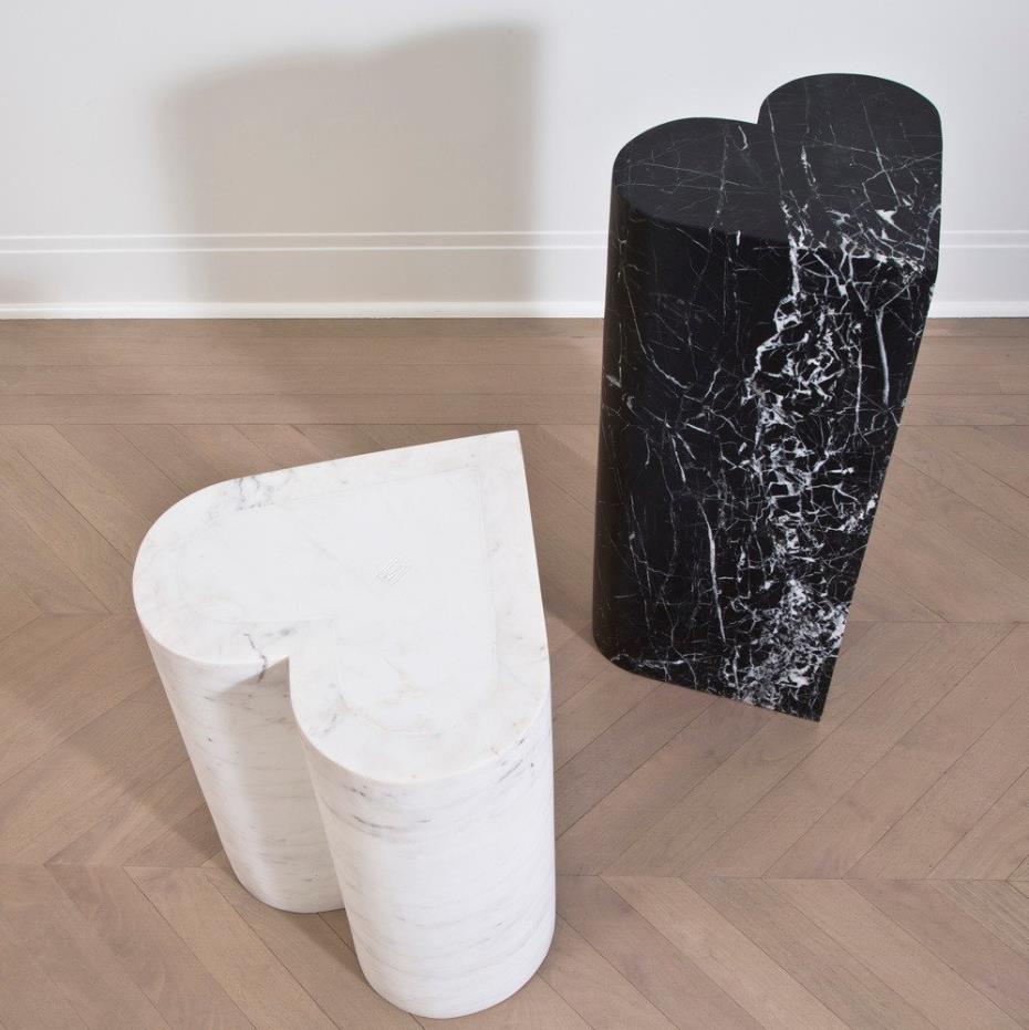这款实心大理石凳子的诱人心形设计以凯利的探索和独特的新主题为特色。 男性和女性艺术,形式和雕塑的完美结合,这一不寻常的作品创造了一个别致的陈述。
