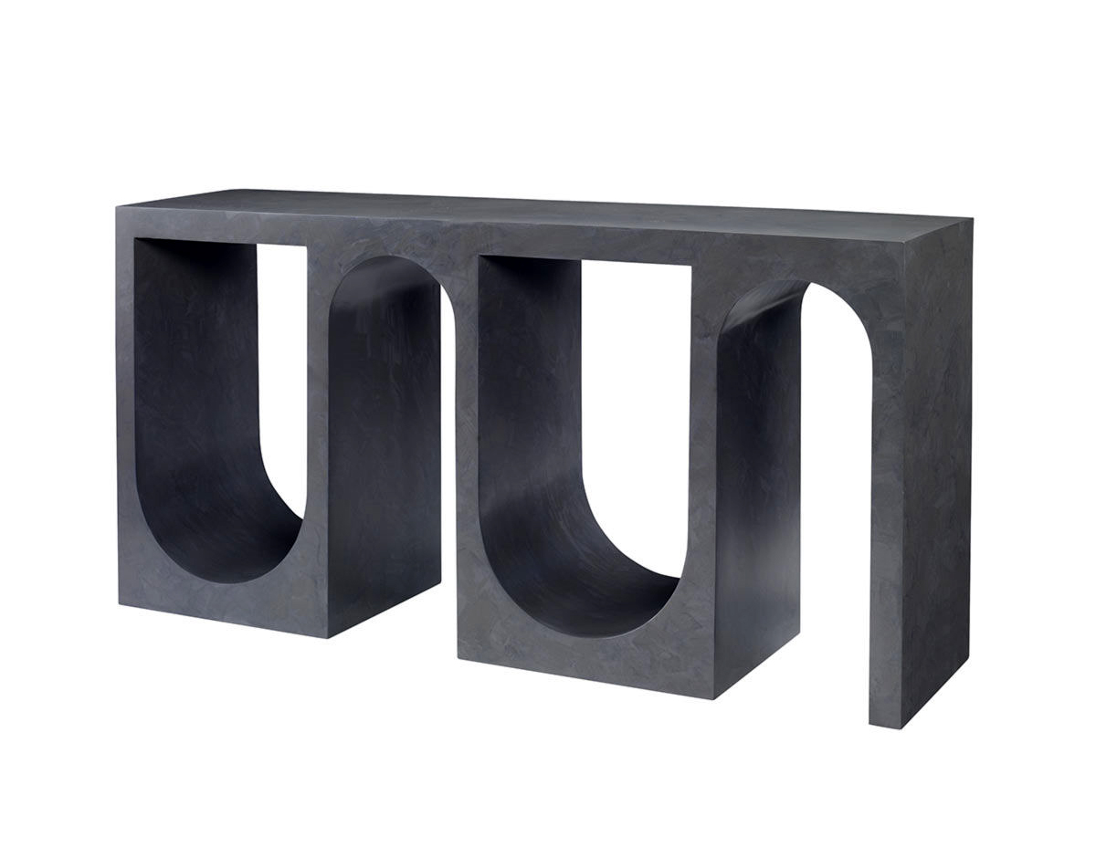 Roxbury玄关台采用实心树脂铸造,手工抹平石膏饰面,具有图形轮廓。 交替的拱形形成了这个独特的玄关台的形状,创造了空间几何和颜色的美丽调制。
