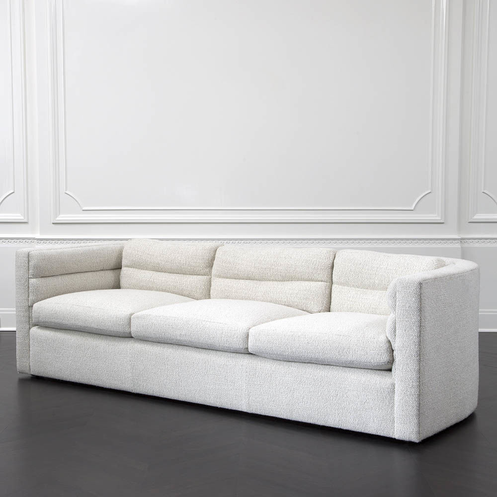 这款经典的扶手沙发采用柔软弧形靠背设计,整个过程中都有标志性的定制通道细节。 三个松散的靠垫和三个座垫使用10/90混合的鸭绒和羽毛,以延长寿命和极致舒适。 腿部采用低嵌入式木结构,使轮廓能够漂浮在地面上方。 硬木框架采用双向榫钉,配有8向手动弹簧,经久耐用,性能卓越。