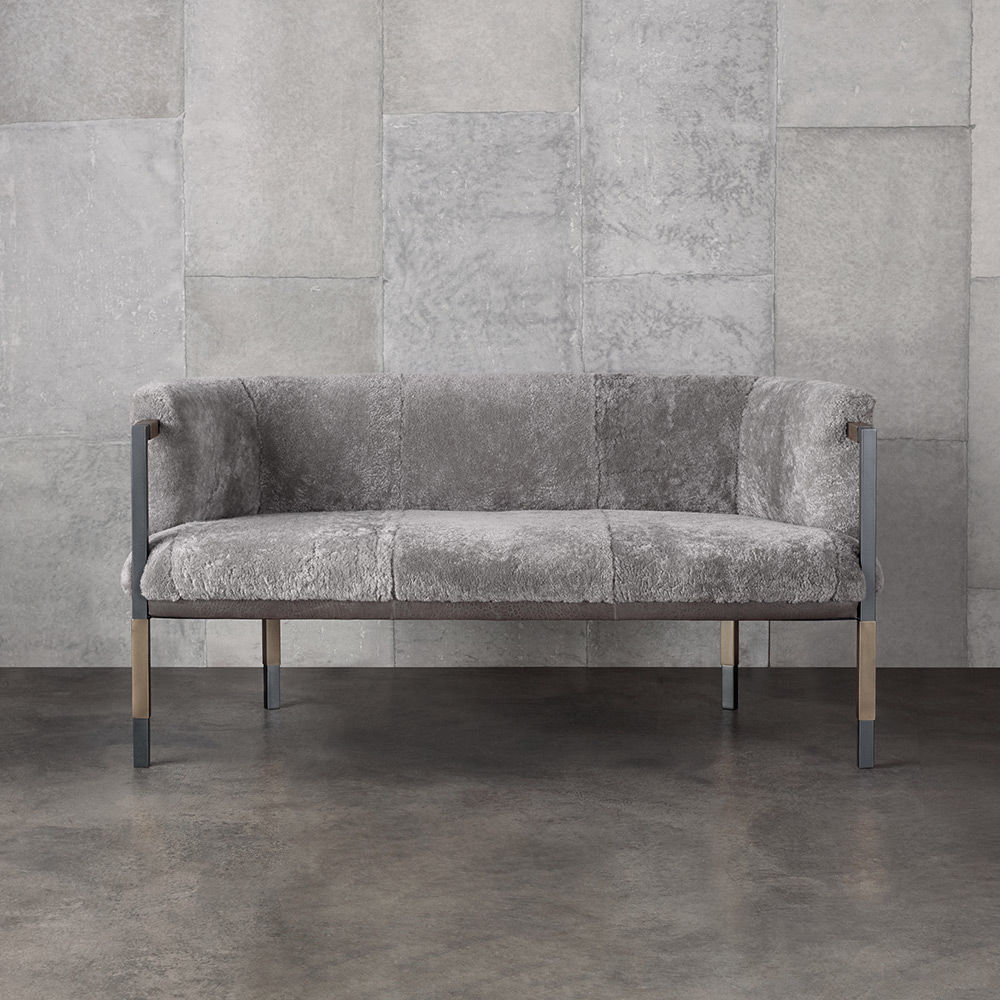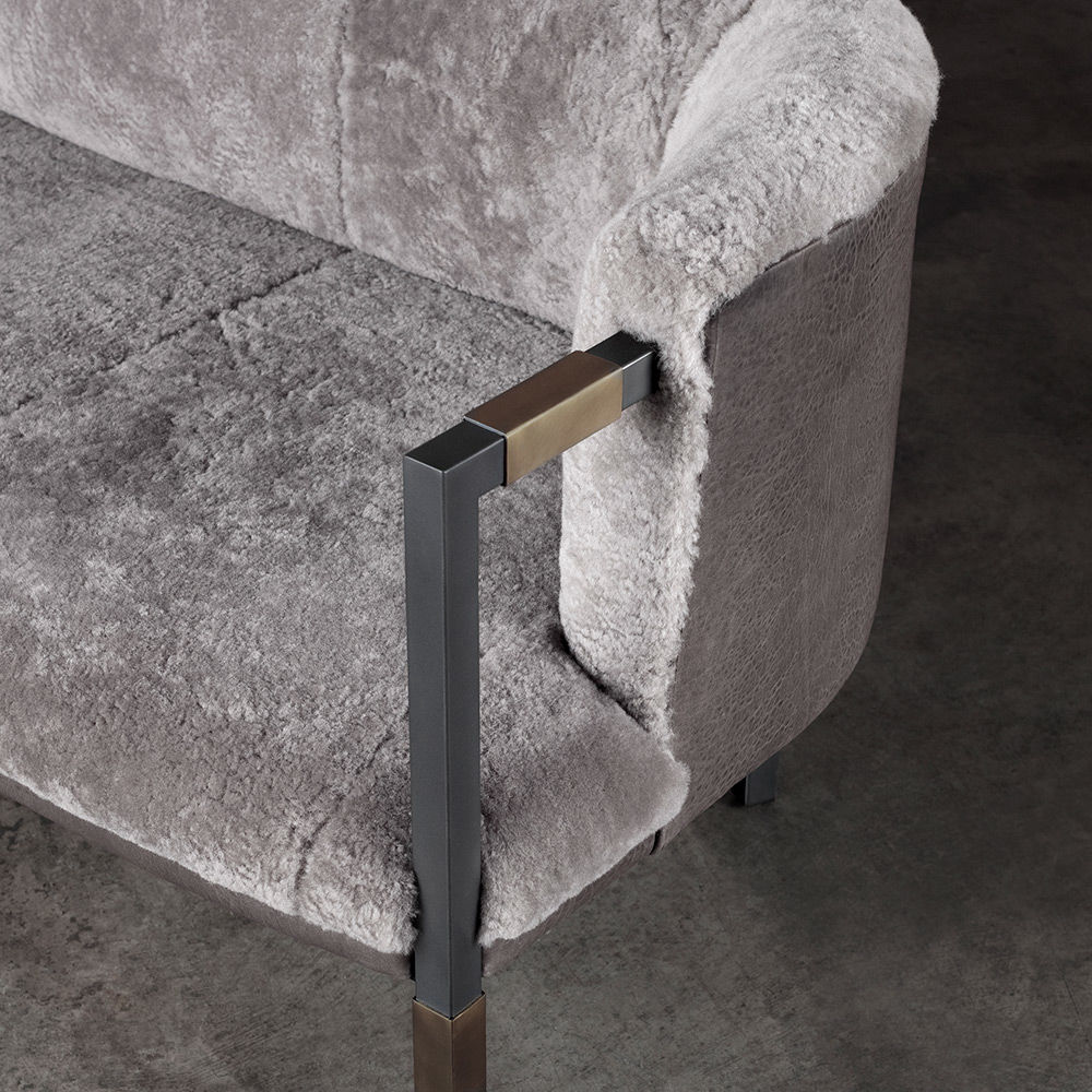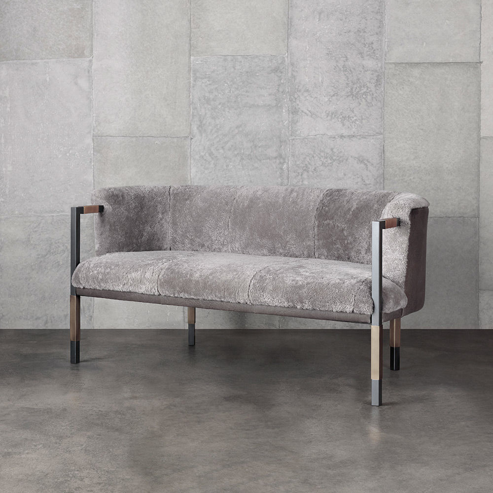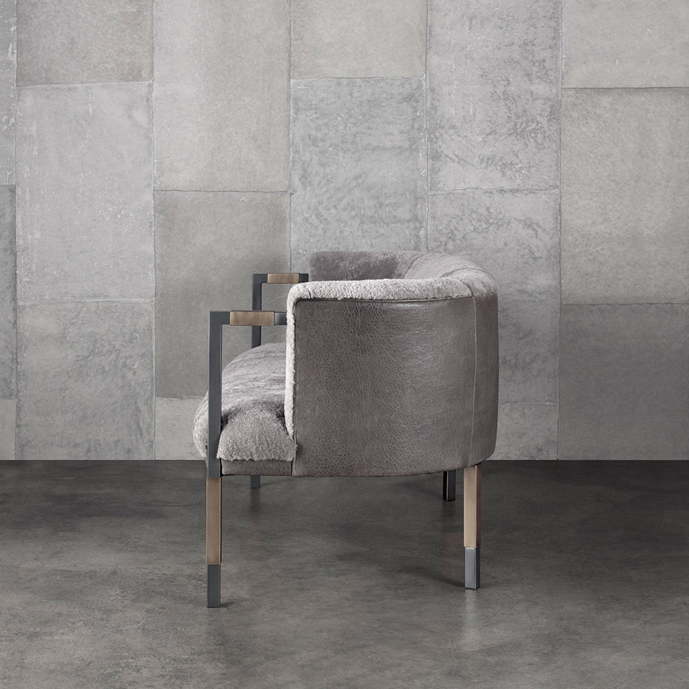 Larchmont Settee实现了形式和功能的无缝共存,从前现代主义建筑风格中汲取灵感,特别注重物质性和几何性。 这款双人长靠椅采用方形外形不锈钢框架,饰有Pewter Patina,和抛光黄铜套管细节。