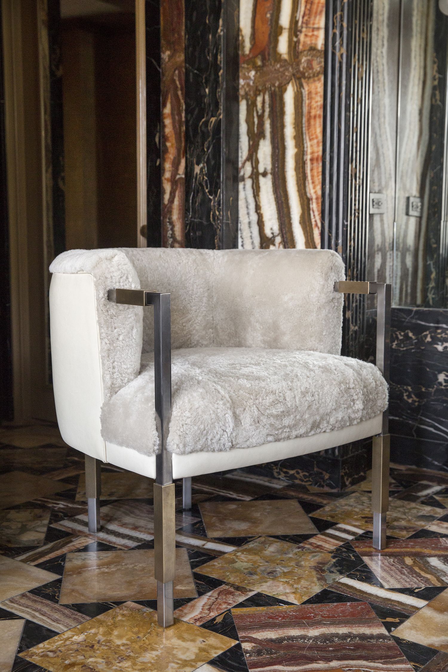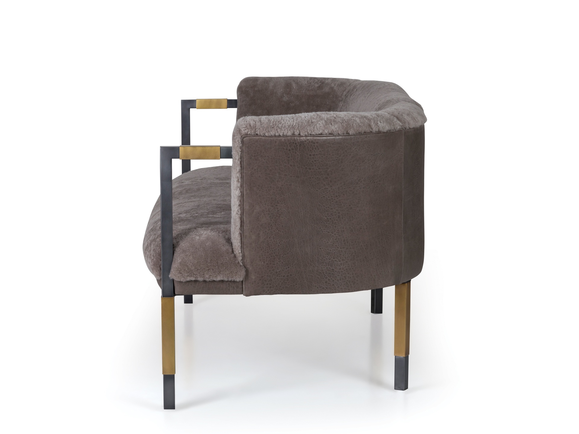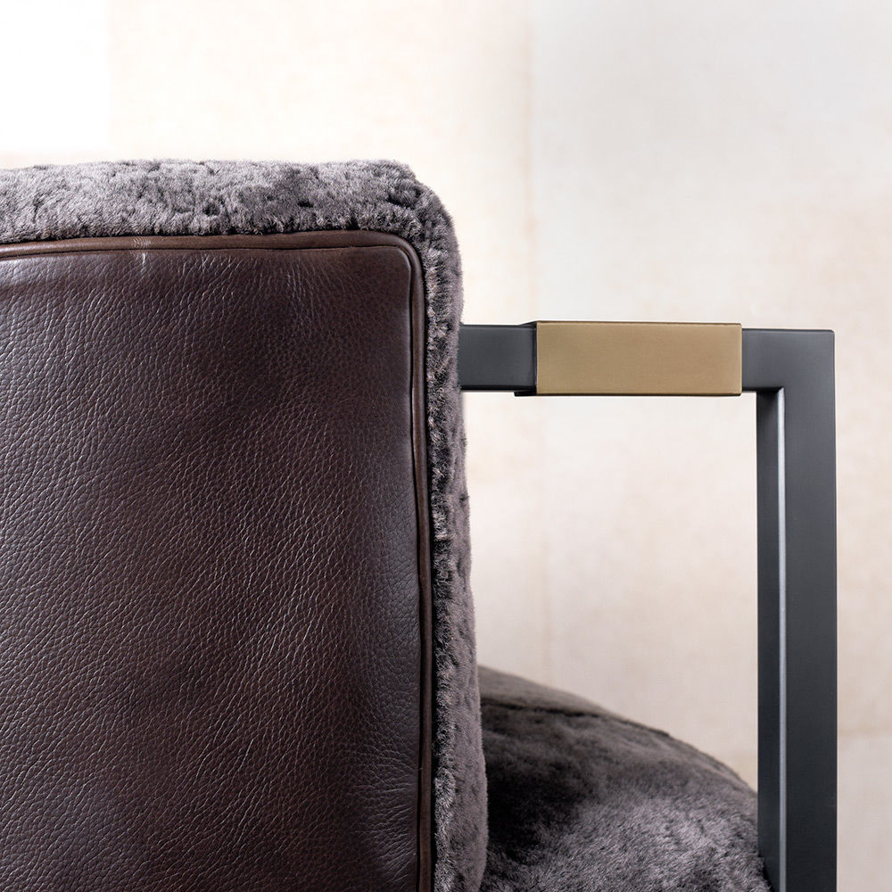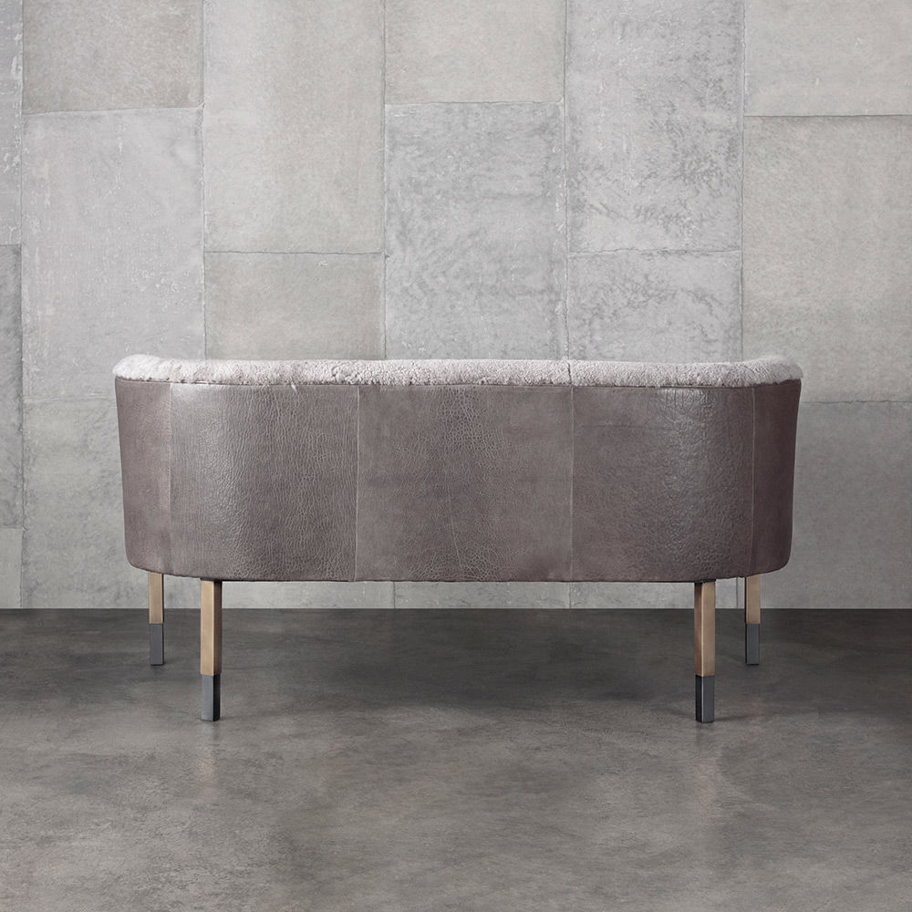 Larchmont Settee实现了形式和功能的无缝共存,从前现代主义建筑风格中汲取灵感,特别注重物质性和几何性。 这款双人长靠椅采用方形外形不锈钢框架,饰有Pewter Patina,和抛光黄铜套管细节。