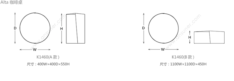 Alta 咖啡桌 系列尺寸/示意图