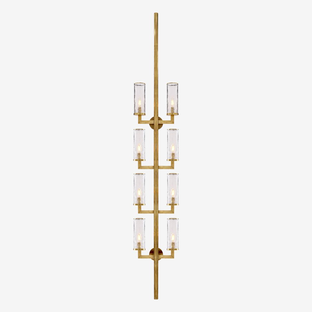 Liaison壁灯以其干净的建筑金属细节和破碎玻璃的动态美感,模糊了现代和经典的线条。 该壁灯适用于室内和室外空间,可提供古董抛光黄铜,青铜和抛光镍。