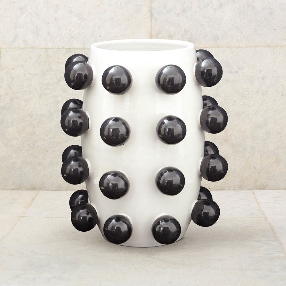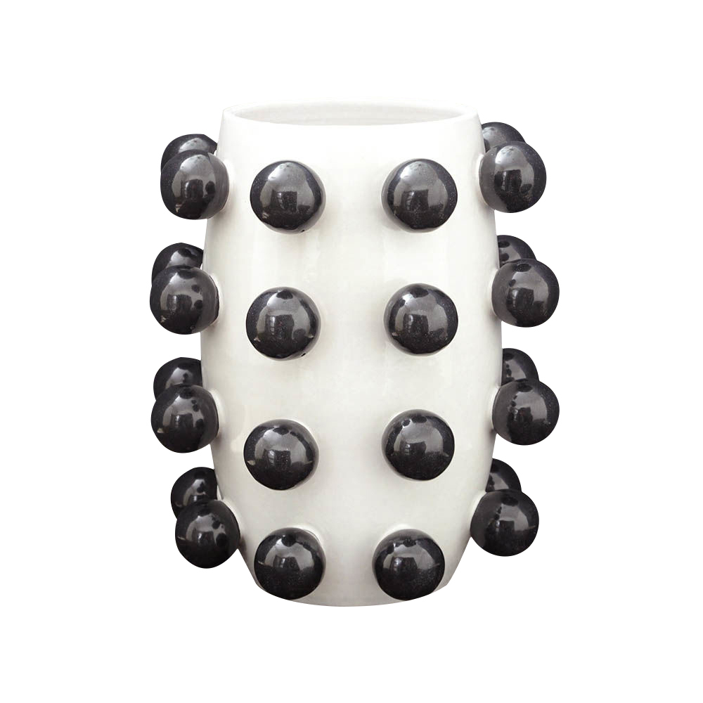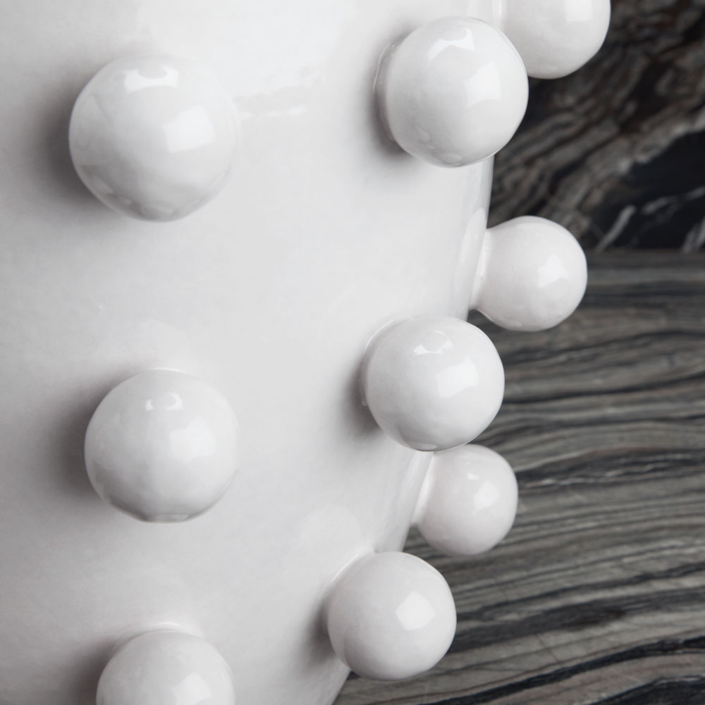 灵感来自凯利的爱的对比,这款充满活力的陶瓷花瓶与装饰球体一起被用作令人兴奋的细节,与流行系列中的其他作品相得益彰。 作为鲜花独立花瓶的完美之选,它是首选作品,使房子里的任何房间都活跃起来。