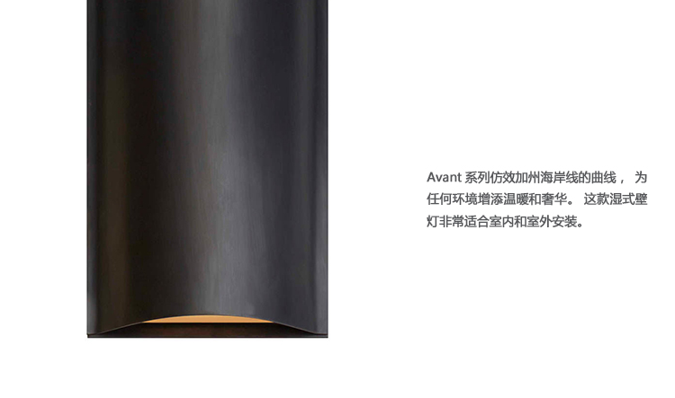 Avant系列仿效加州海岸线的曲线,为任何环境增添温暖和奢华。 这款湿式壁灯非常适合室内和室外安装。