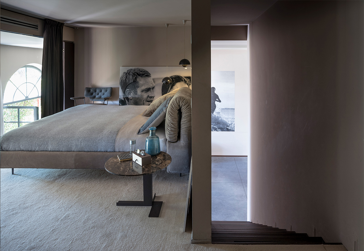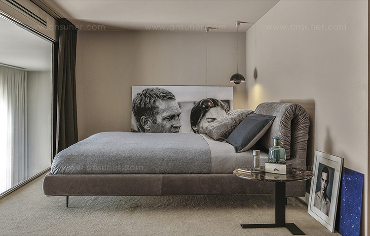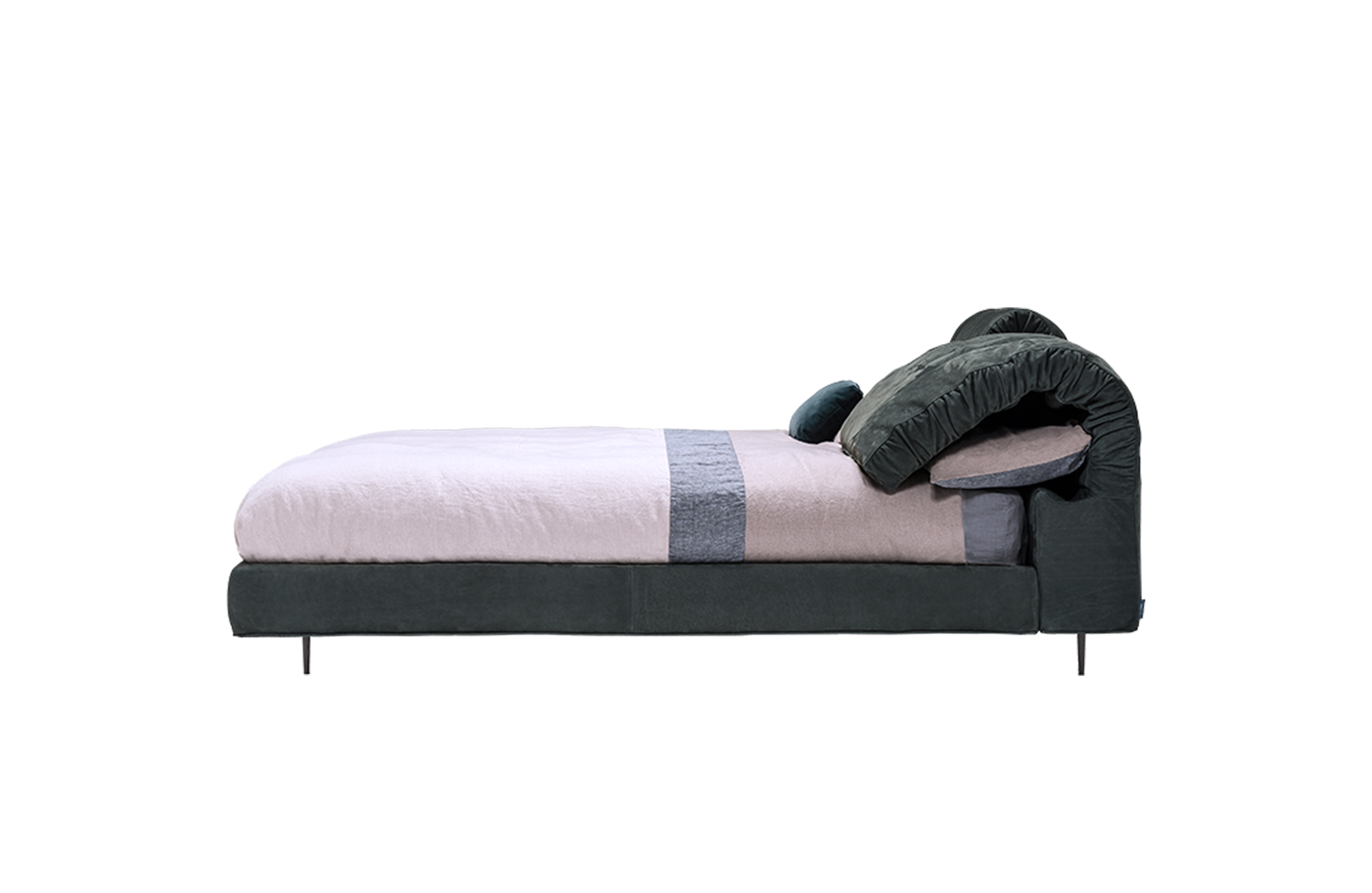 枕头可以藏在床头板后面,床头板有一种柔软的可以折叠的装饰性特征。这崭新的细节,为一个柔软别致的床。