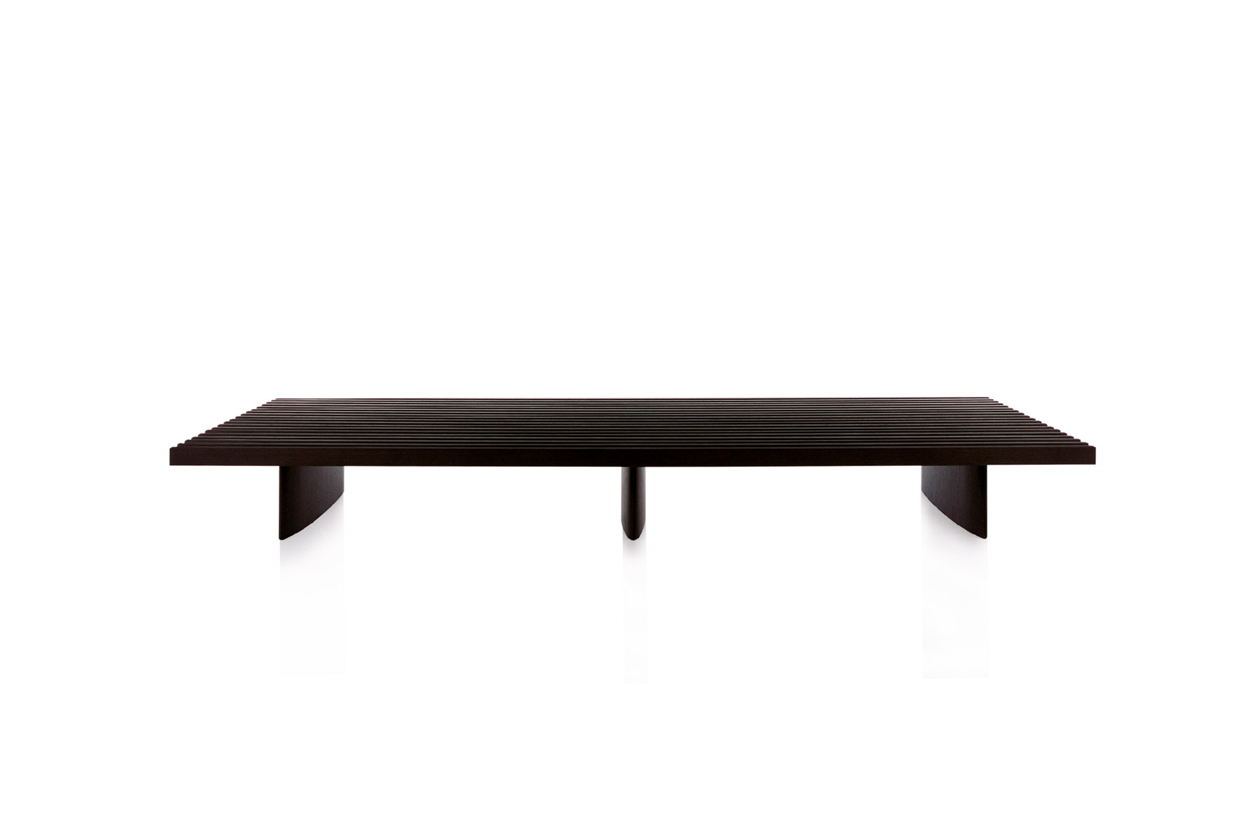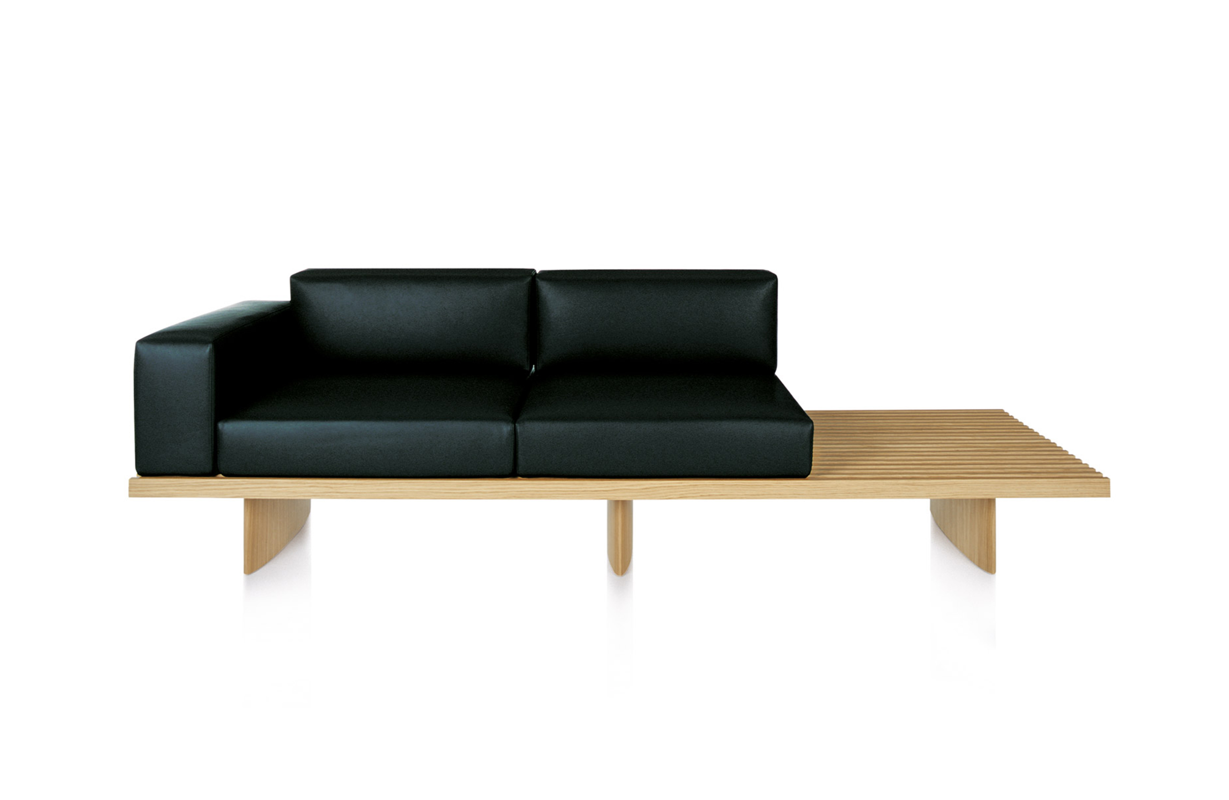 用作矮桌、长凳或和只需配备靠垫就能成为软榻的模块化系列。框架采用天然木色或黑色橡木。表面由19根板条组成;采用两条或三条支腿。软垫采用聚氨酯纤维和喷胶棉填充,用于扶手、座面,配对软垫: 一个座垫和一个靠垫。使用简单的固定装置就可将软垫固定于框架上。软垫可自由定位于表面的任何部分;因此,可使表面按照所需的尺寸用作座椅底座或顶面。