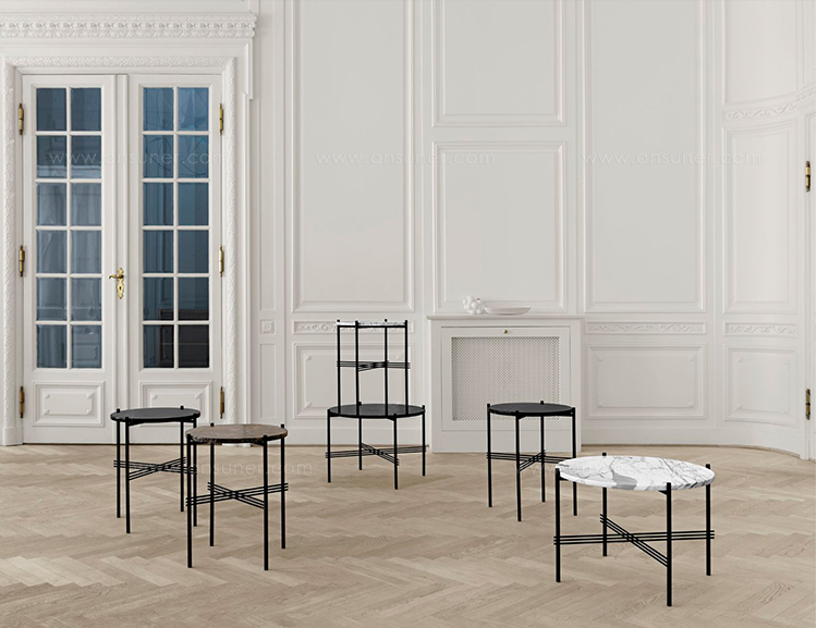 由GamFratesi独家设计的TS系列,是为哥本哈根著名餐厅The Standard而设计的。不仅仅是桌子的名字从古老的海关得到了灵感,还有美学和材料的选择。坚硬的大理石桌面与细长的金属底座形成鲜明对比,强烈地参考了建筑的建筑结构,材料在场地中被发现。为了进一步扩展它的多功能性,这个系列现在也可以用彩色玻璃和黄铜底座装饰豪华的桌面。TS集合由一张躺椅、一个矩形和一个圆形控制台组成,有不同的大小和颜色组合,因此可以根据大小、颜色和组合的表的数量创建不同的表达式和函数。然而,它们本身是美丽的。