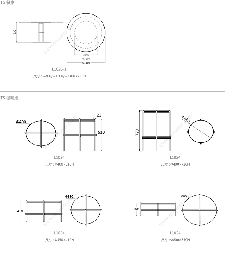 TS 圆柱餐桌 系列尺寸/示意图
