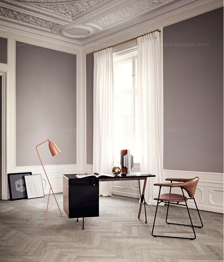 标志性的Grashoppa落地灯于1947年由女性先锋Greta M. Grossman制造。Grashoppa落地灯独特的三脚架向后倾斜,给人一种灯是有生命的感觉。作为格罗斯曼最具标志性的设计之一,这款正宗的台灯有一个细长的圆锥形遮光罩,可以在需要的地方旋转来引导光线。