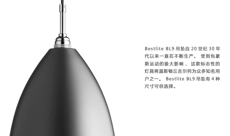 Bestlite BL9吊灯自20世纪30年代以来一直在不断生产。受到包豪斯运动的极大影响,这款标志性的灯具将温斯顿丘吉尔列为众多知名用户之一。