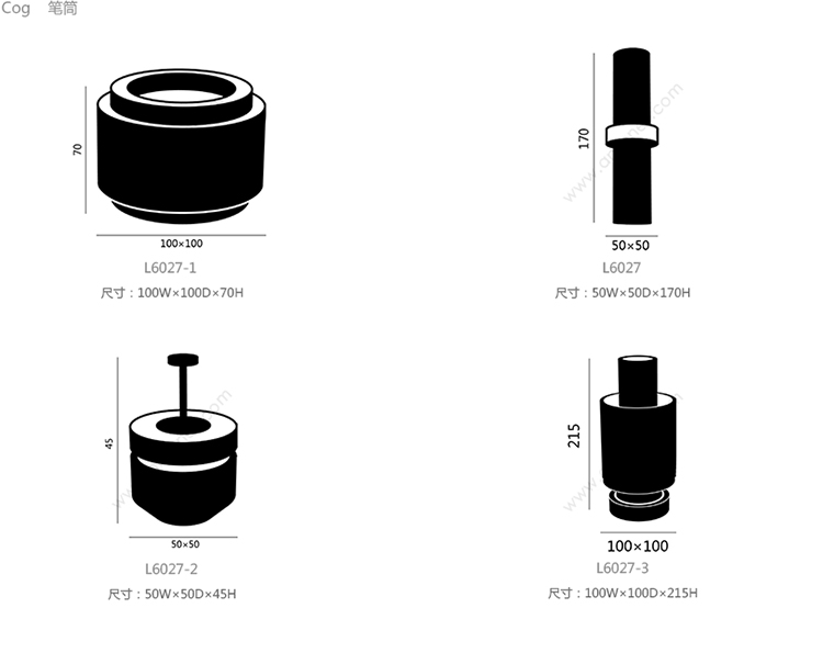 Cog 笔筒 系列尺寸/示意图