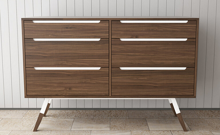 nills dresser(米尔斯梳妆台)能够很好的组织你的衣物,平滑抽屉够大够深,再多的衣物也能很好的存放。制作采用精选MDF板基材、进口美洲胡桃木皮贴面、实木脚架、彩色装饰边、五金拉手、环保净味油漆喷涂、做工精湛。