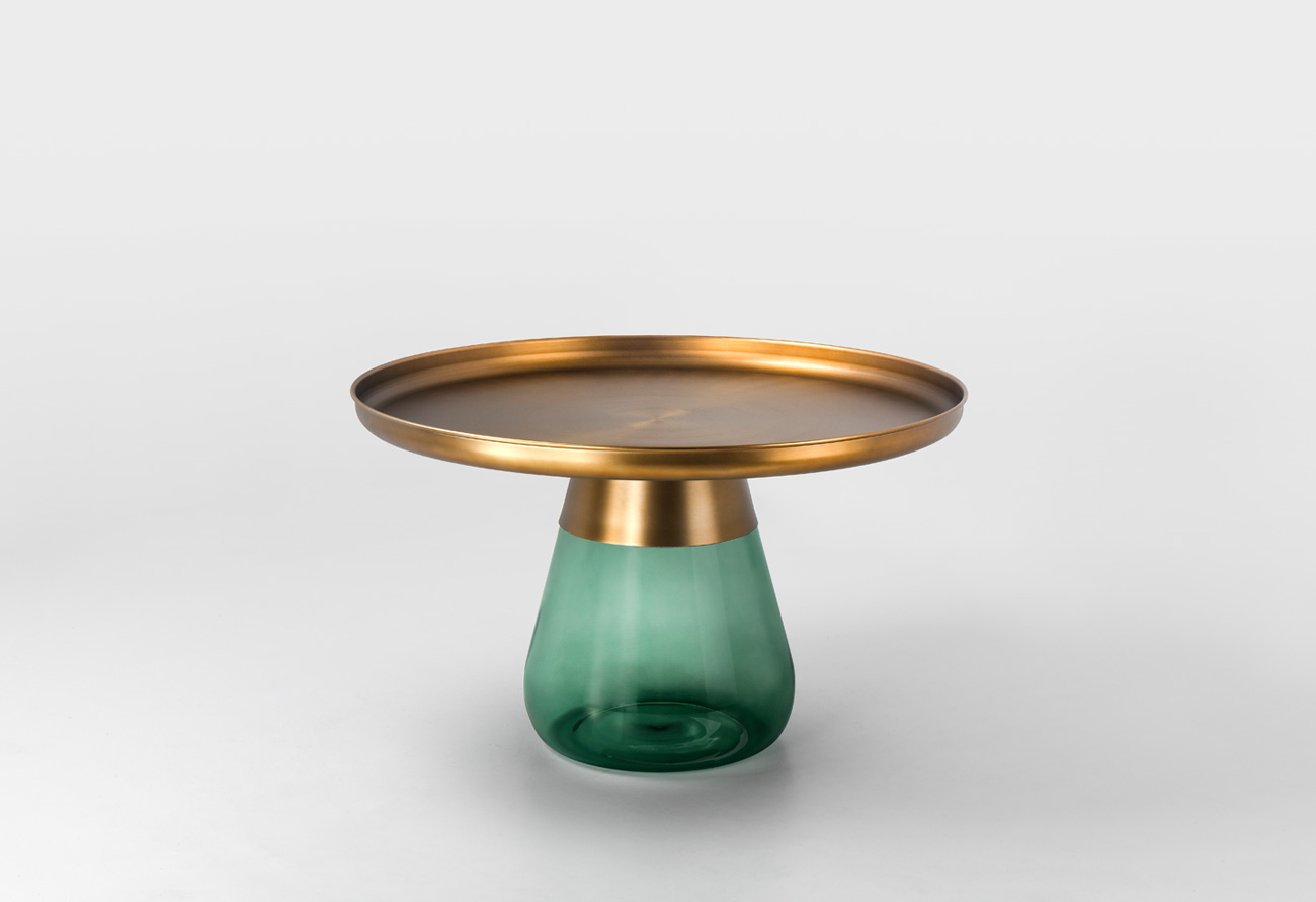 这款半透明带有色彩的玻璃和铝合金组成的手捧咖啡几,有着穿越历史长河的影子,竟像是宫廷画中拿出来的一般,底座的玻璃带给人温润如玉的视觉和触觉的通感。