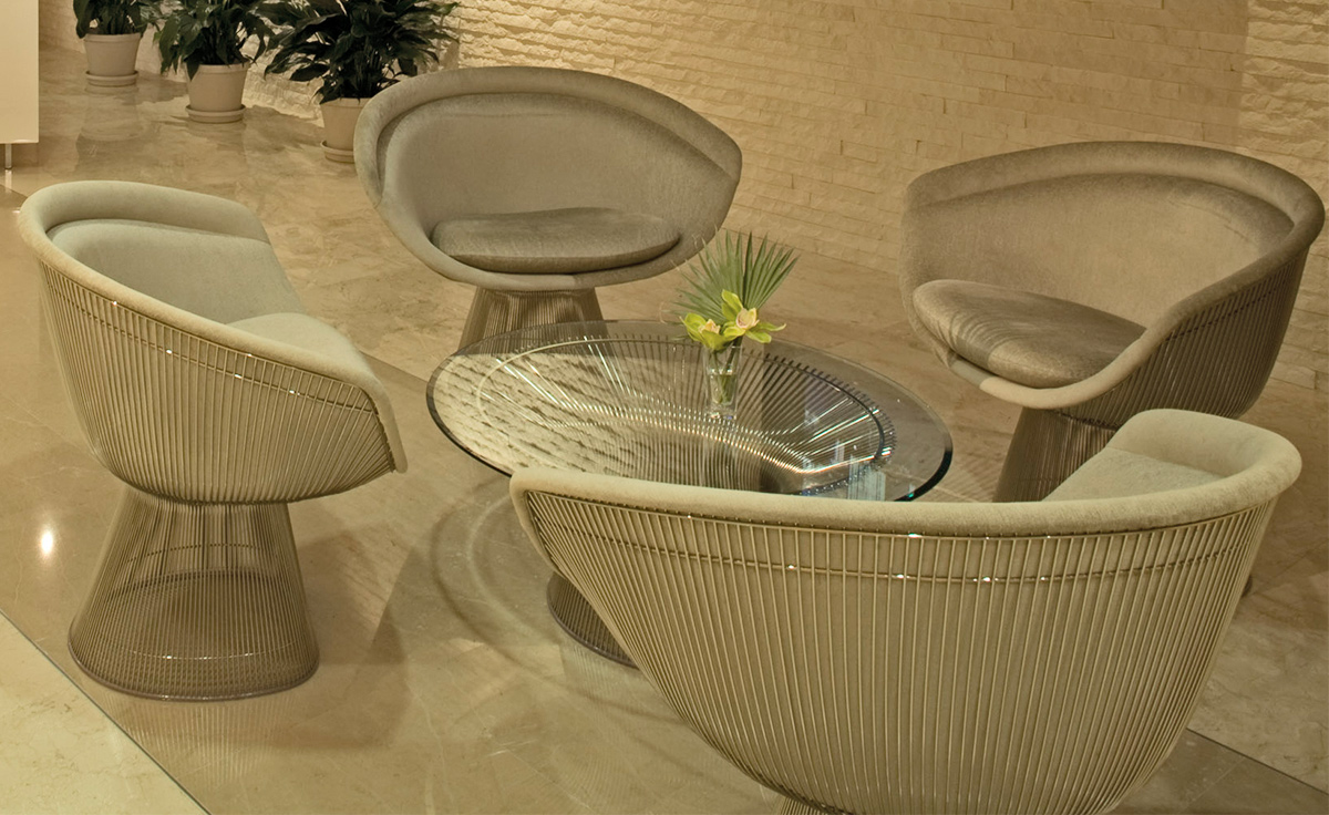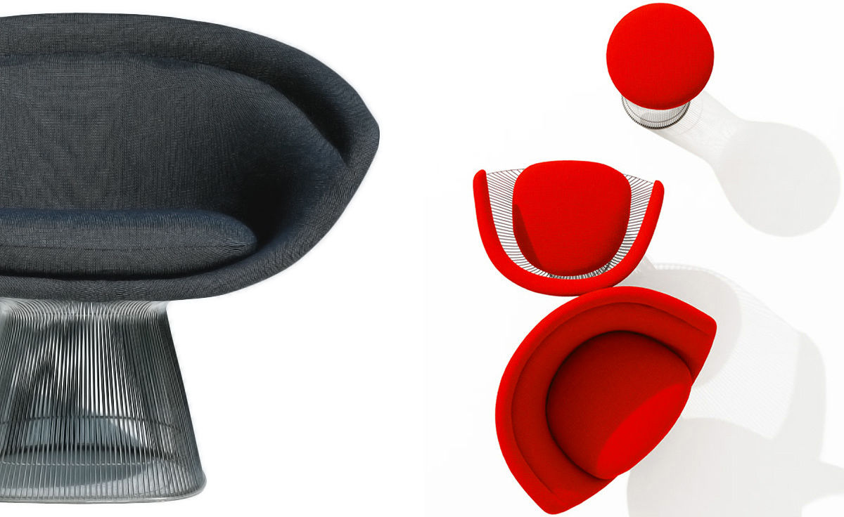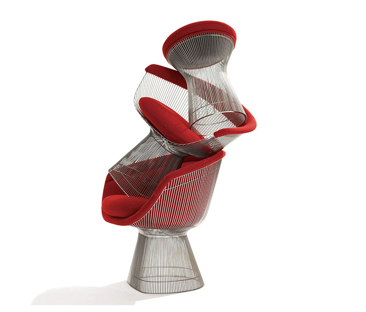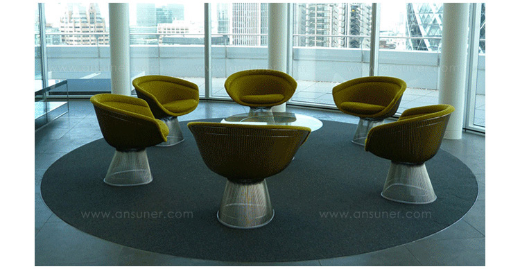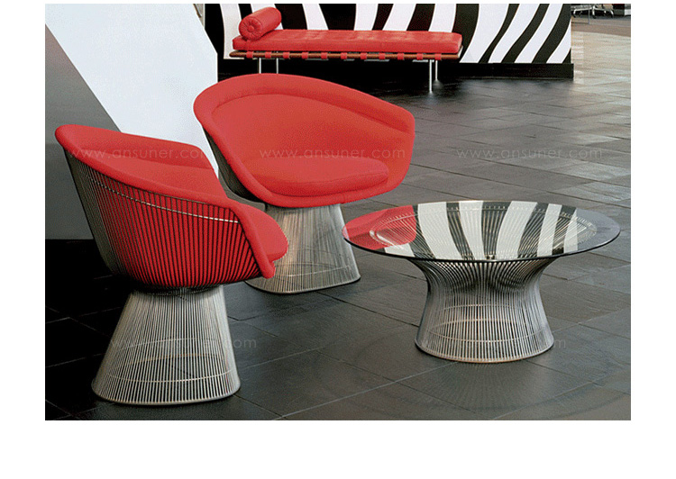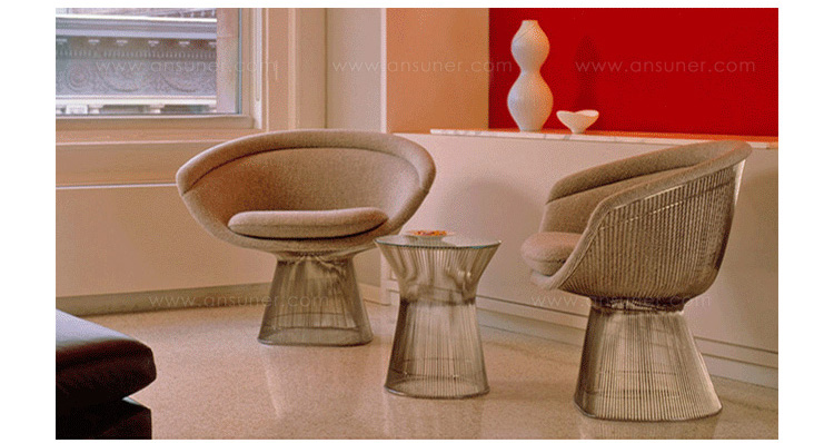 1966年榮獲 American Institute of Architects International Award 美國建築協會國際大獎的 Platner Chair,在設計師 Warren Platner 的創意下,將鋼絲雕塑轉化成一系列收藏級的傢俱,創造了現在被認為是當今時代的設計圖標。