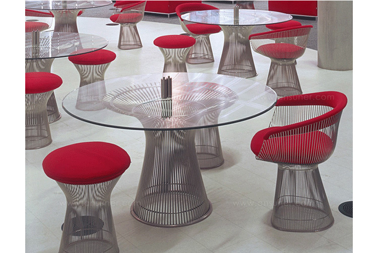 1966年榮獲 American Institute of Architects International Award 美國建築協會國際大獎的 Platner Chair,在設計師 Warren Platner 的創意下,將鋼絲雕塑轉化成一系列收藏級的傢俱,創造了現在被認為是當今時代的設計圖標。
